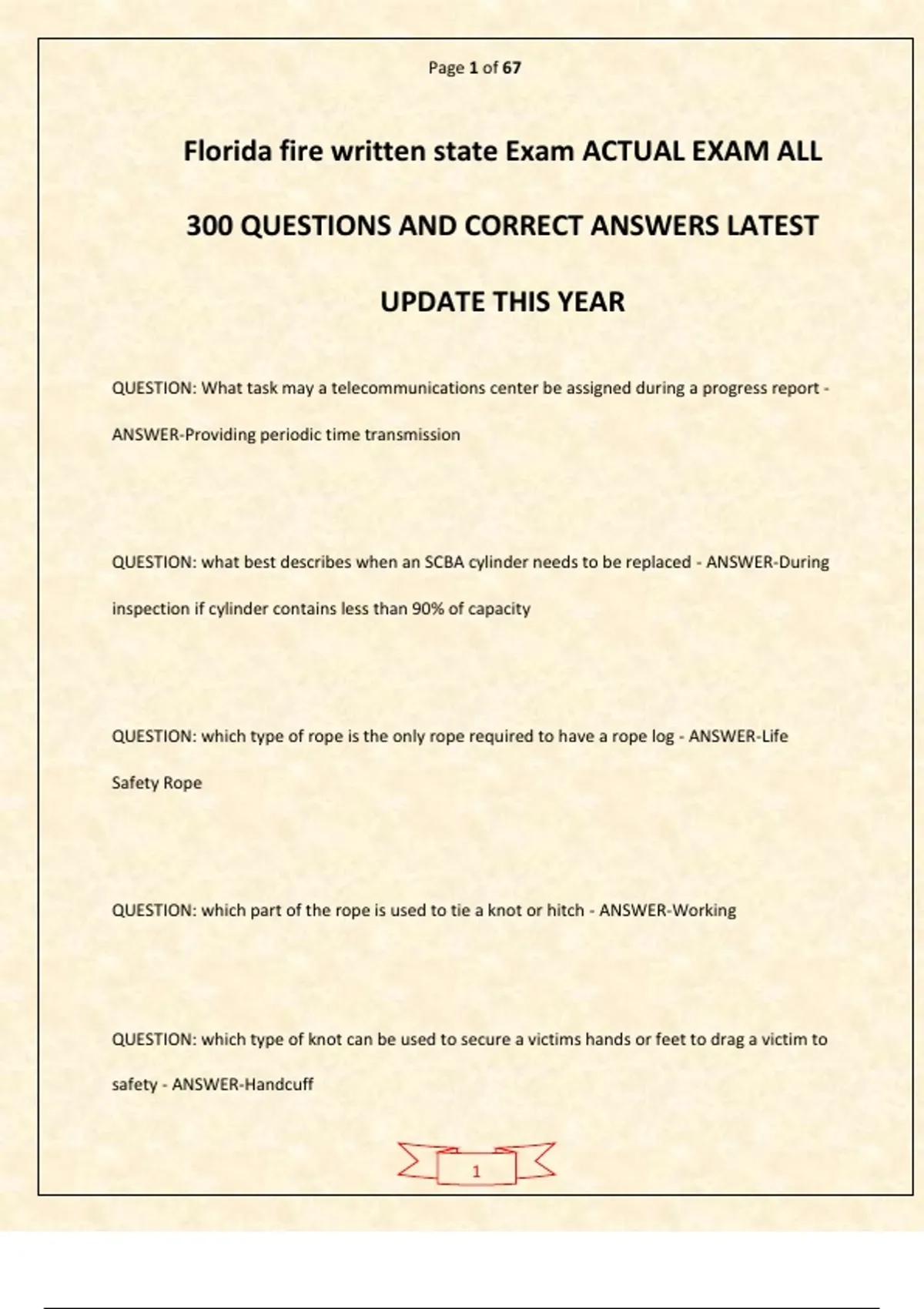Florida fire written state Exam ACTUAL EXAM ALL 300 QUESTIONS AND CORRECT ANSWERS LATEST UPDATE THIS YEAR