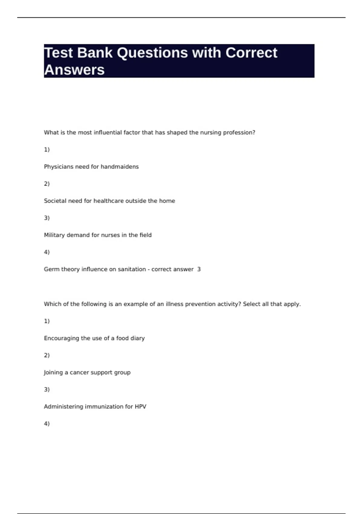 Test Bank Questions with Correct