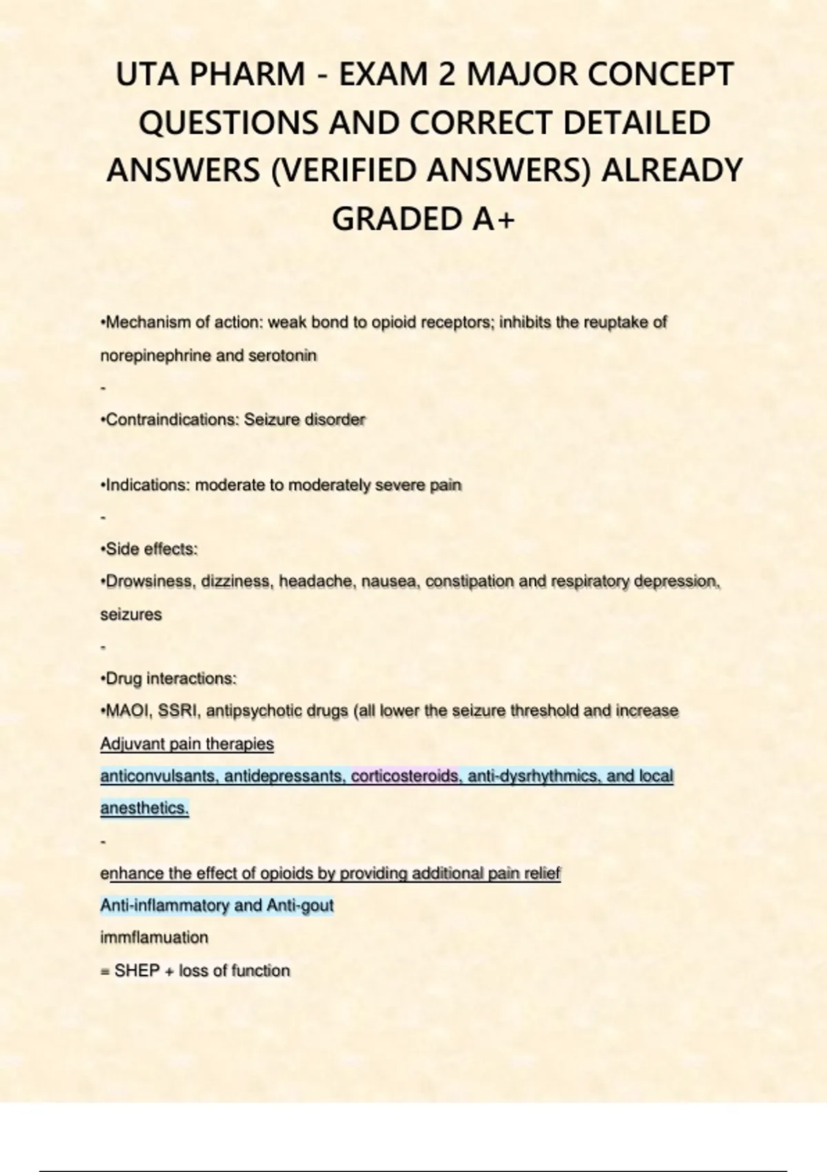 , UTA PHARM - EXAM 2 MAJOR CONCEPT