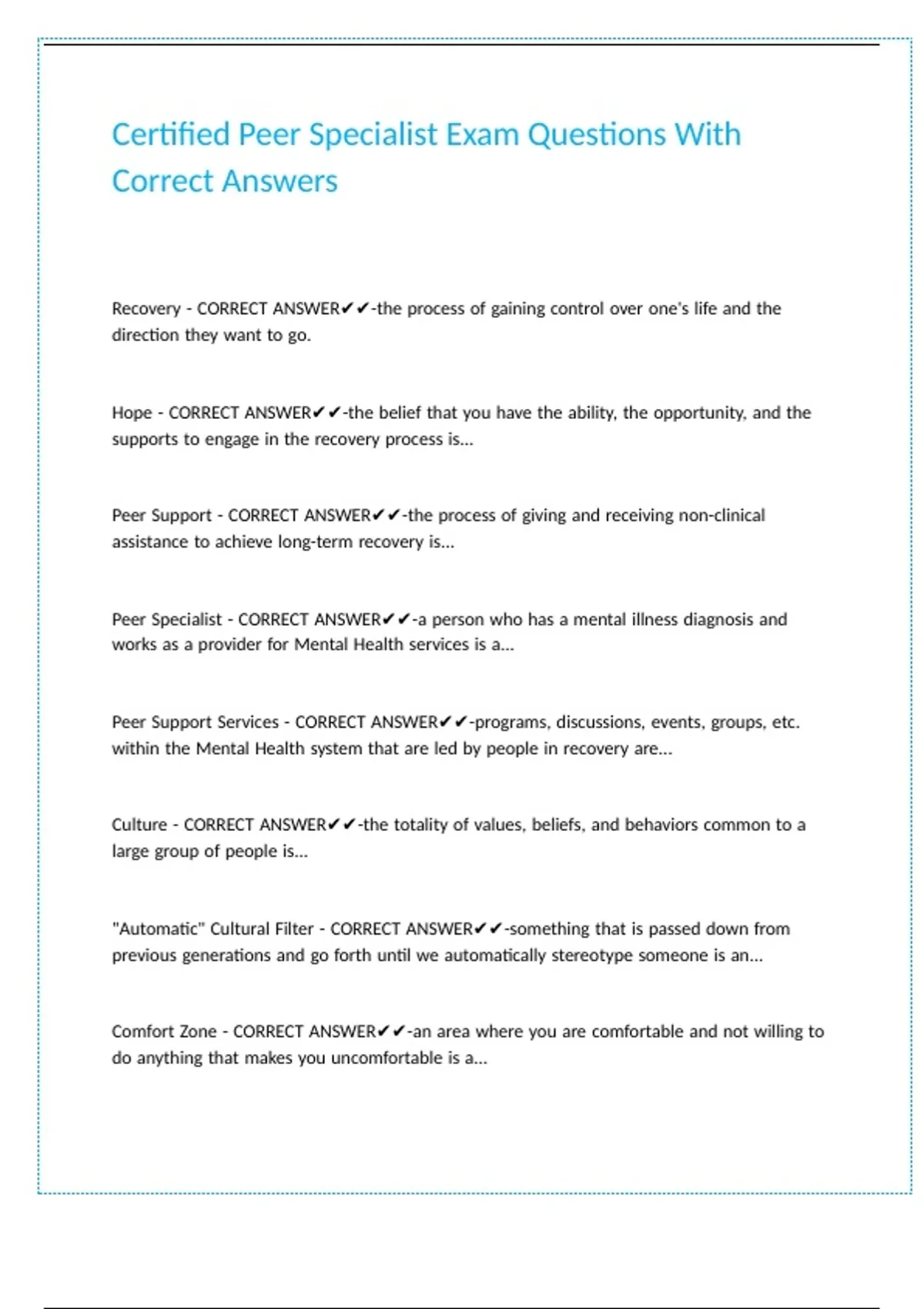 Certified Peer Specialist Exam Questions With