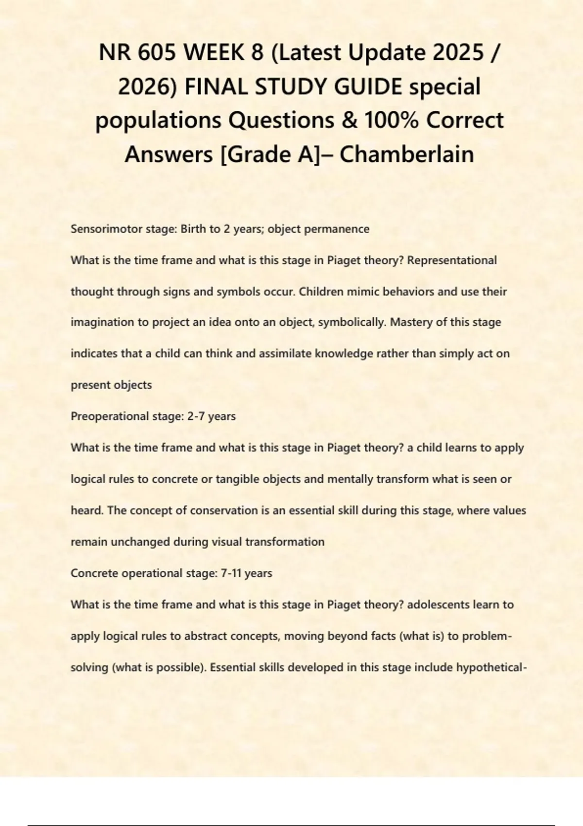NR 605 WEEK 8 (Latest Update ) FINAL STUDY GUIDE special populations Questions & 100-correct answers