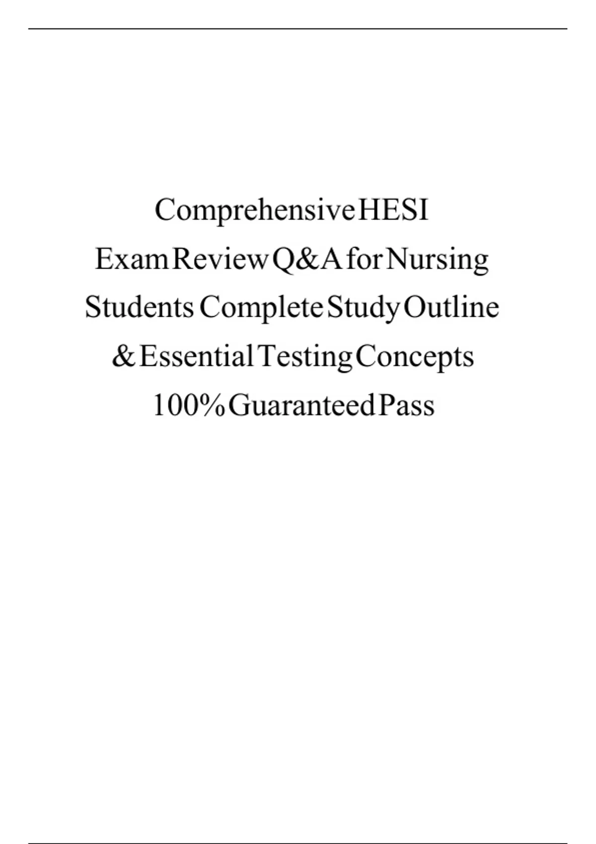 Comprehensive HESI Exam Review for Nursing Students | Complete Study Outline & Essential Testing Concepts | Questions and 100% Verified Answers with Rationales | Guaranteed Pass!!! | Latest Update!!!