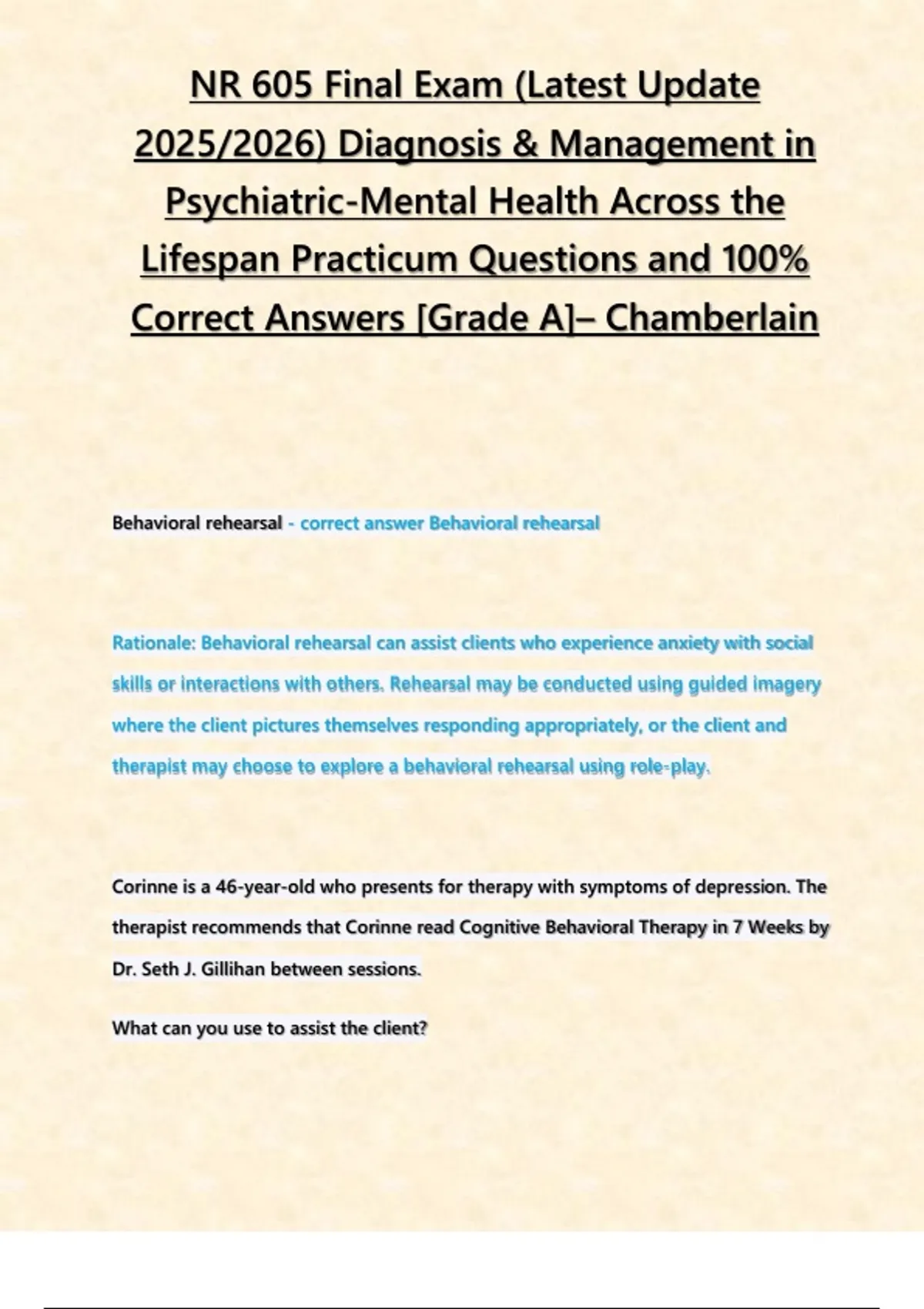 Lifespan Practicum Questions and 100%