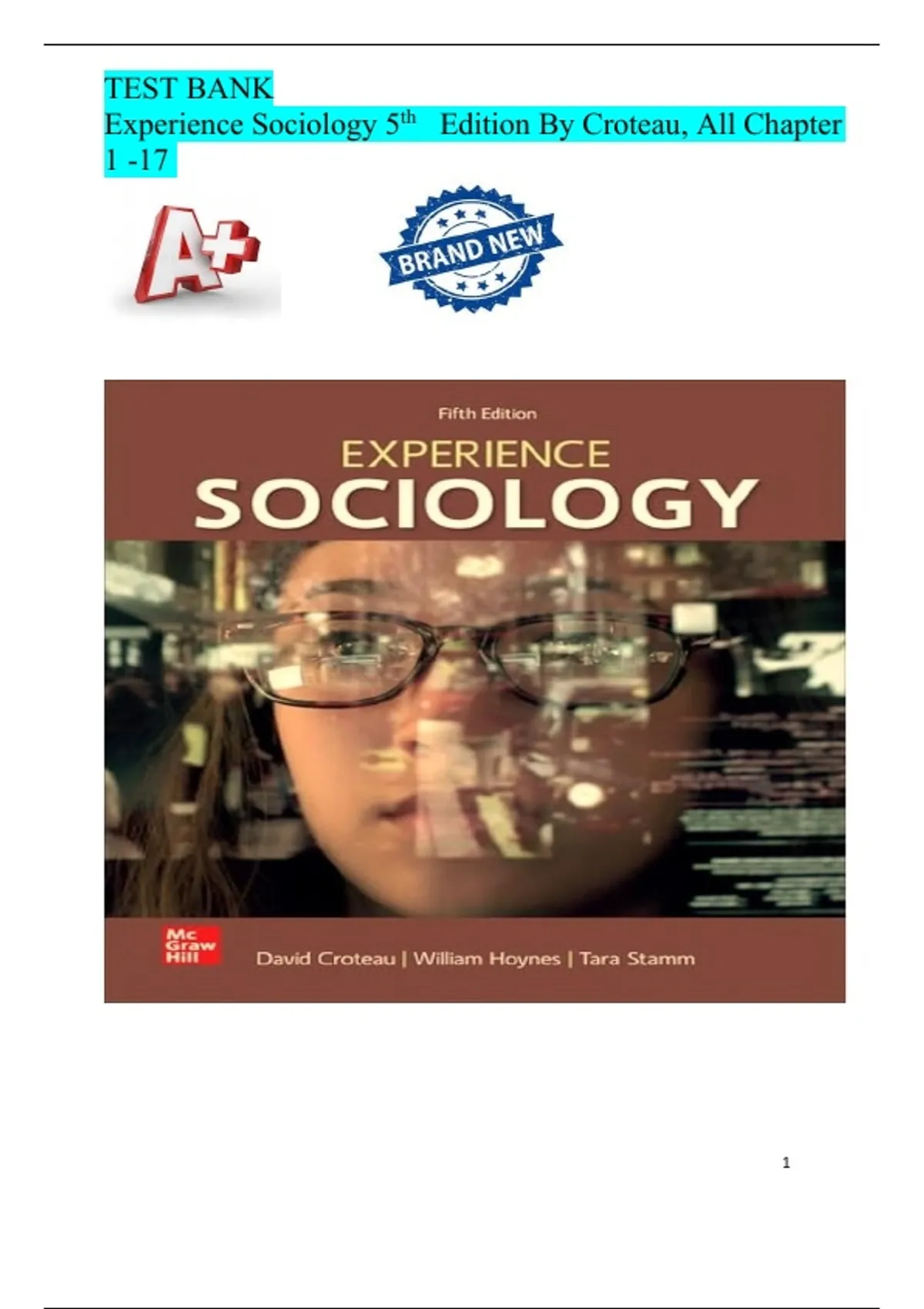 Experience Sociology 5th Edition By Croteau, All Chapter