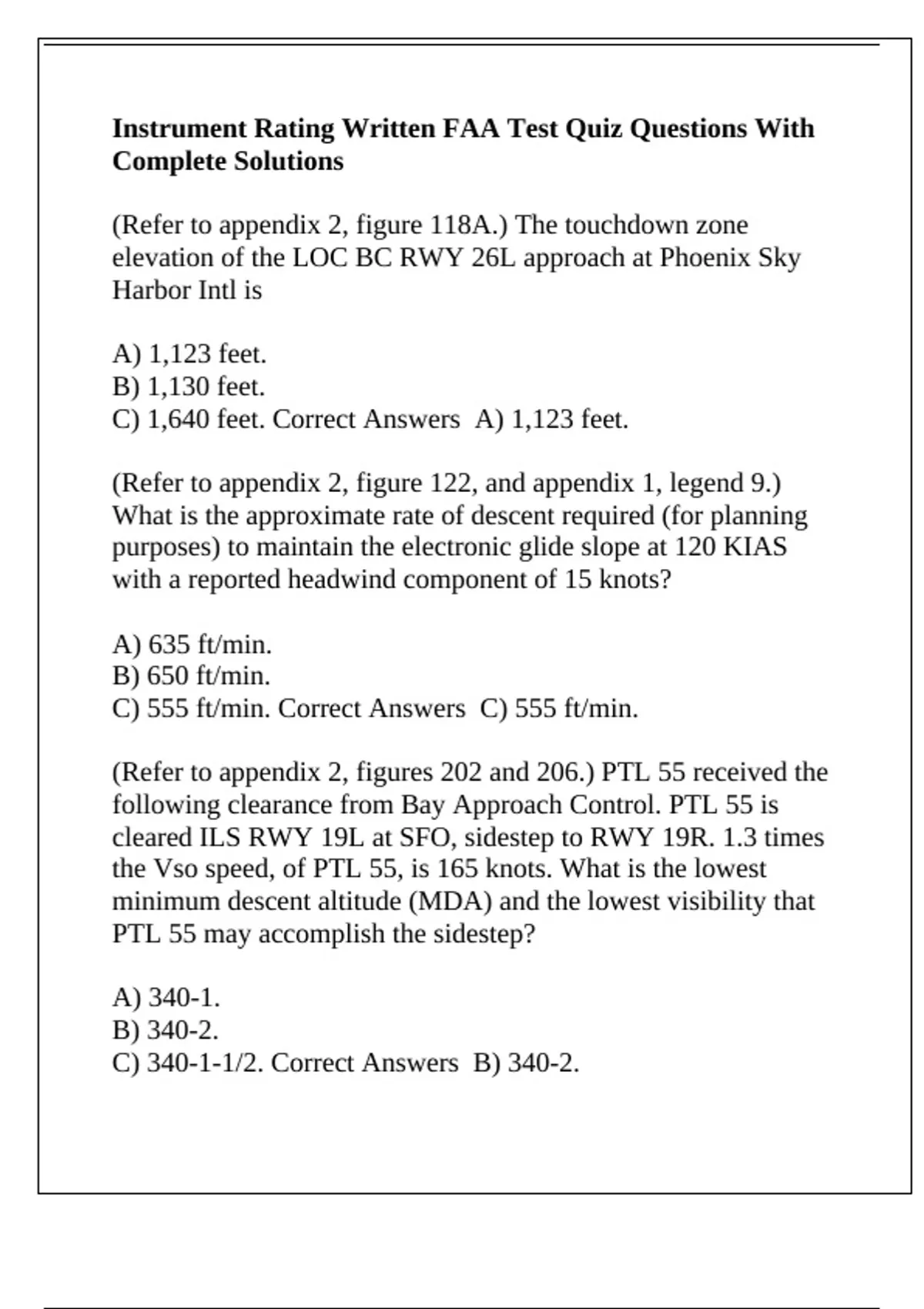 C) 555 ft/min. Correct Answers C) 555 ft/min.