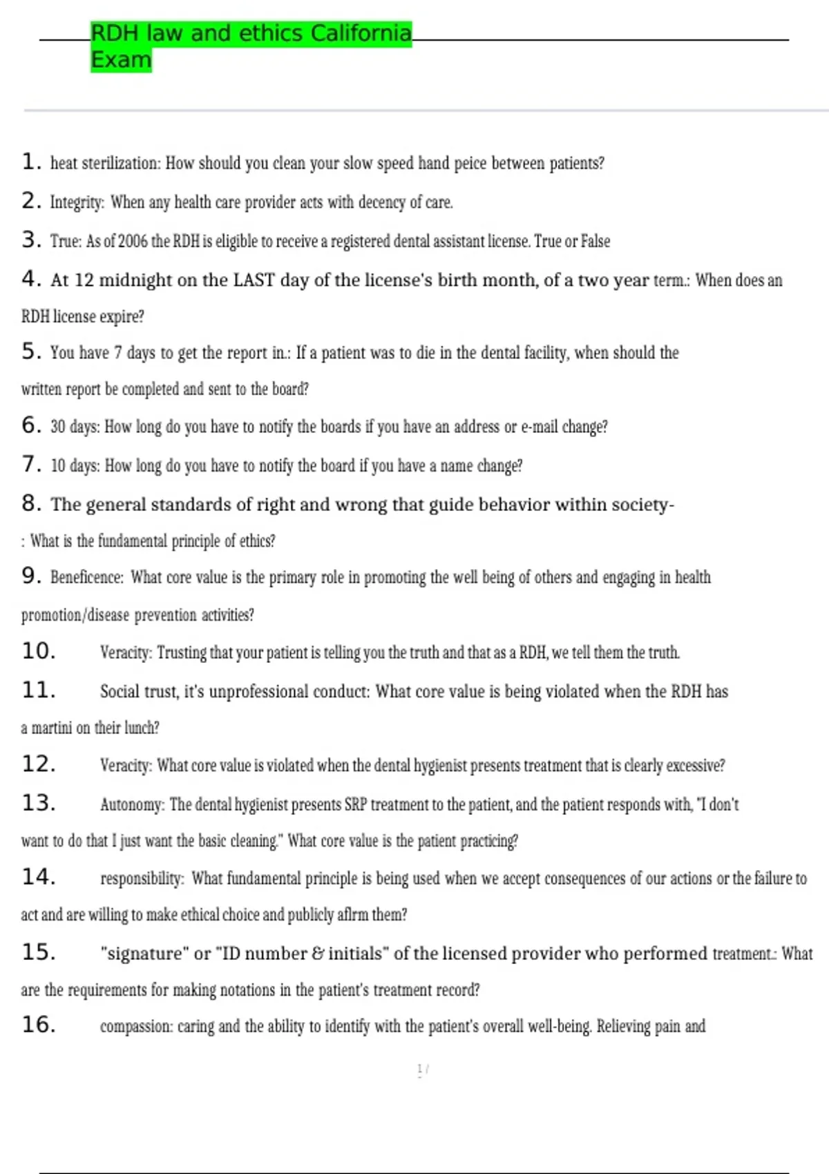 , RDH law and ethics California