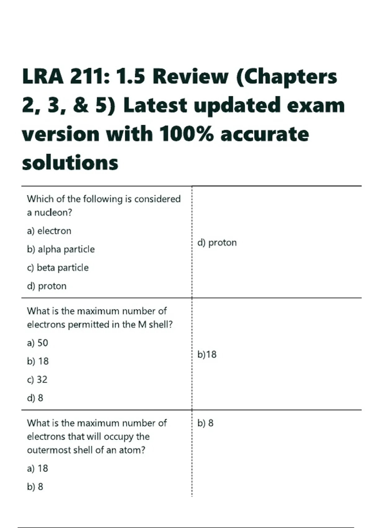 LRA 211 1.5 Review (Chapters 2, 3, & 5) Latest updated exam version with 100- accurate solutions