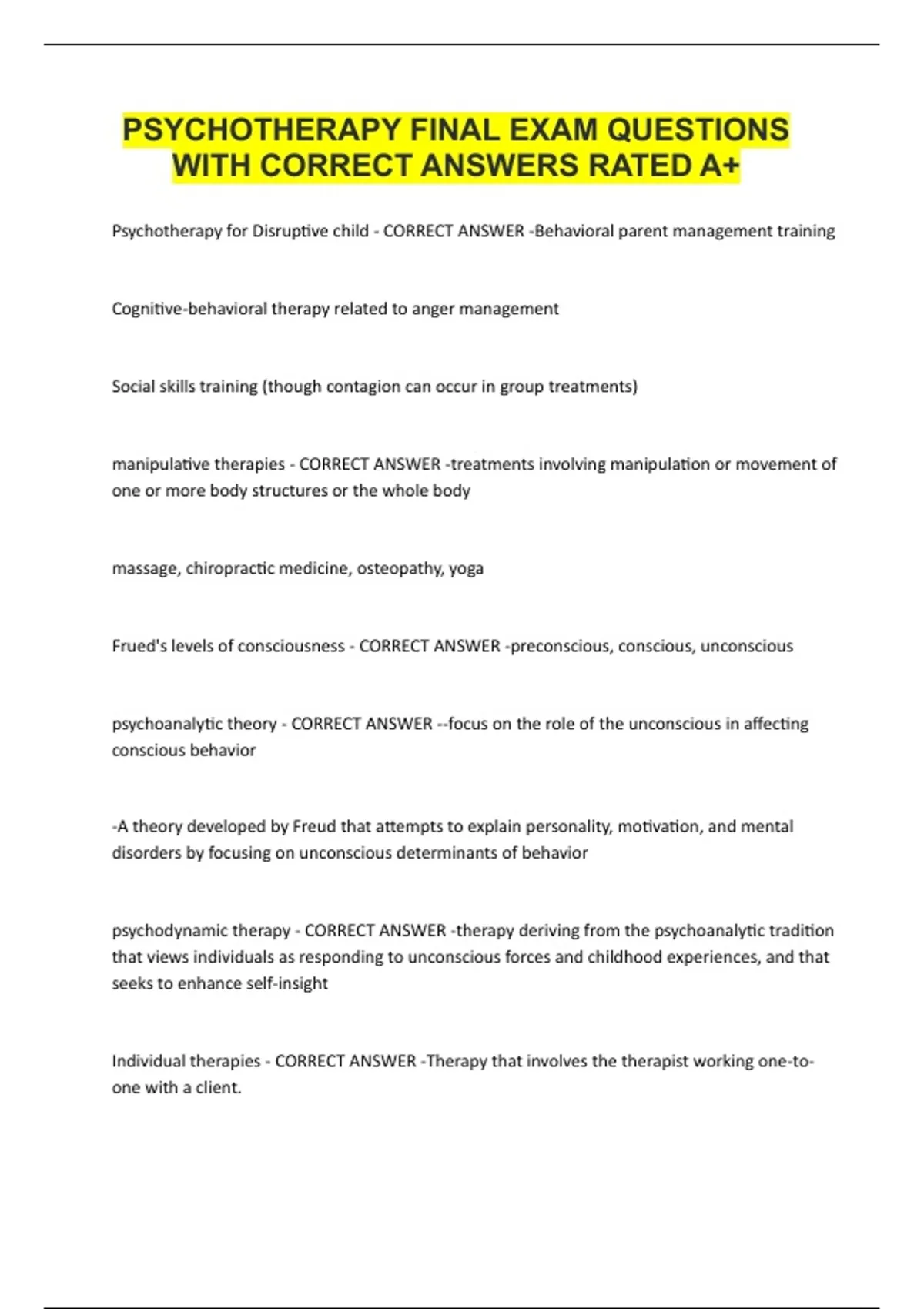 PSYCHOTHERAPY FINAL EXAM QUESTIONS