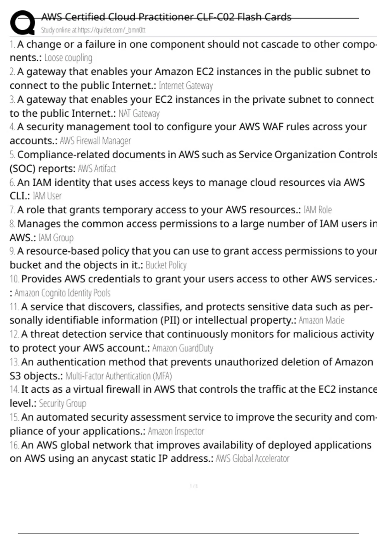 , AWS Certified Cloud Practitioner CLF-C02 Flash Cards