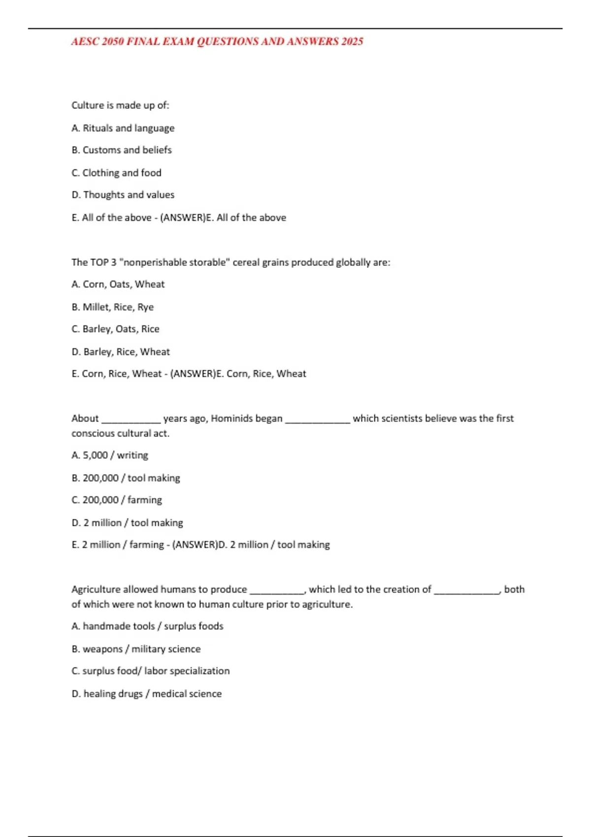 , AESC 2050 FINAL EXAM QUESTIONS AND ANSWERS 2025
