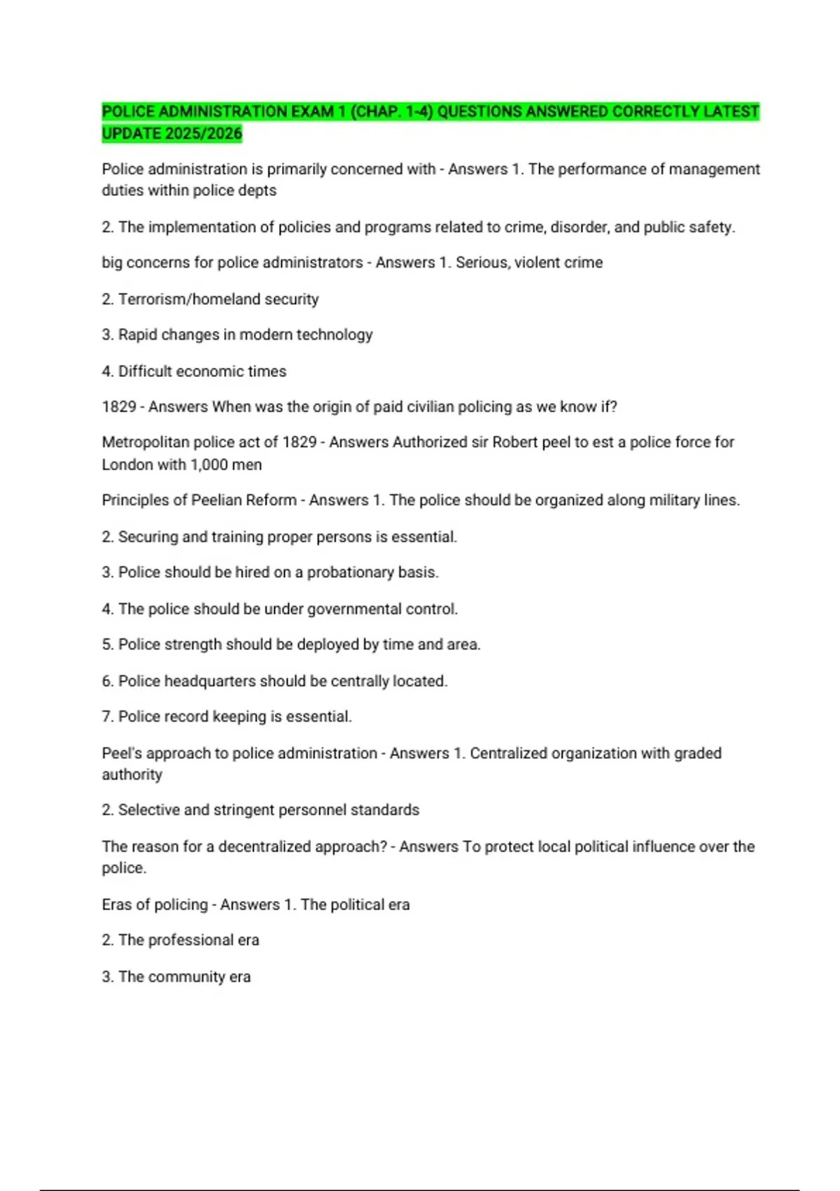 Peel's approach to police administration - Answers 1. Centralized organization with graded