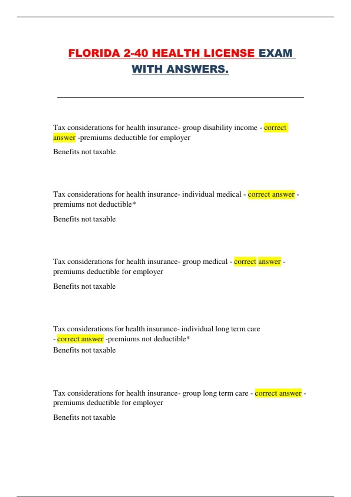 Tax considerations for health insurance- BOE - correct answer - premiums