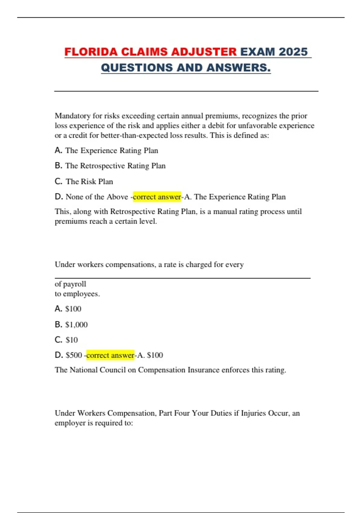 D. None of the Above -correct answer-A. The Experience Rating Plan