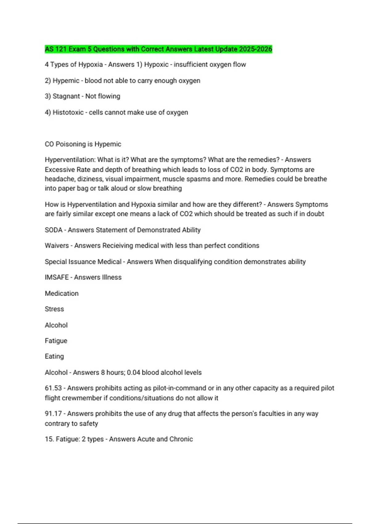 15. Fatigue: 2 types - Answers Acute and Chronic