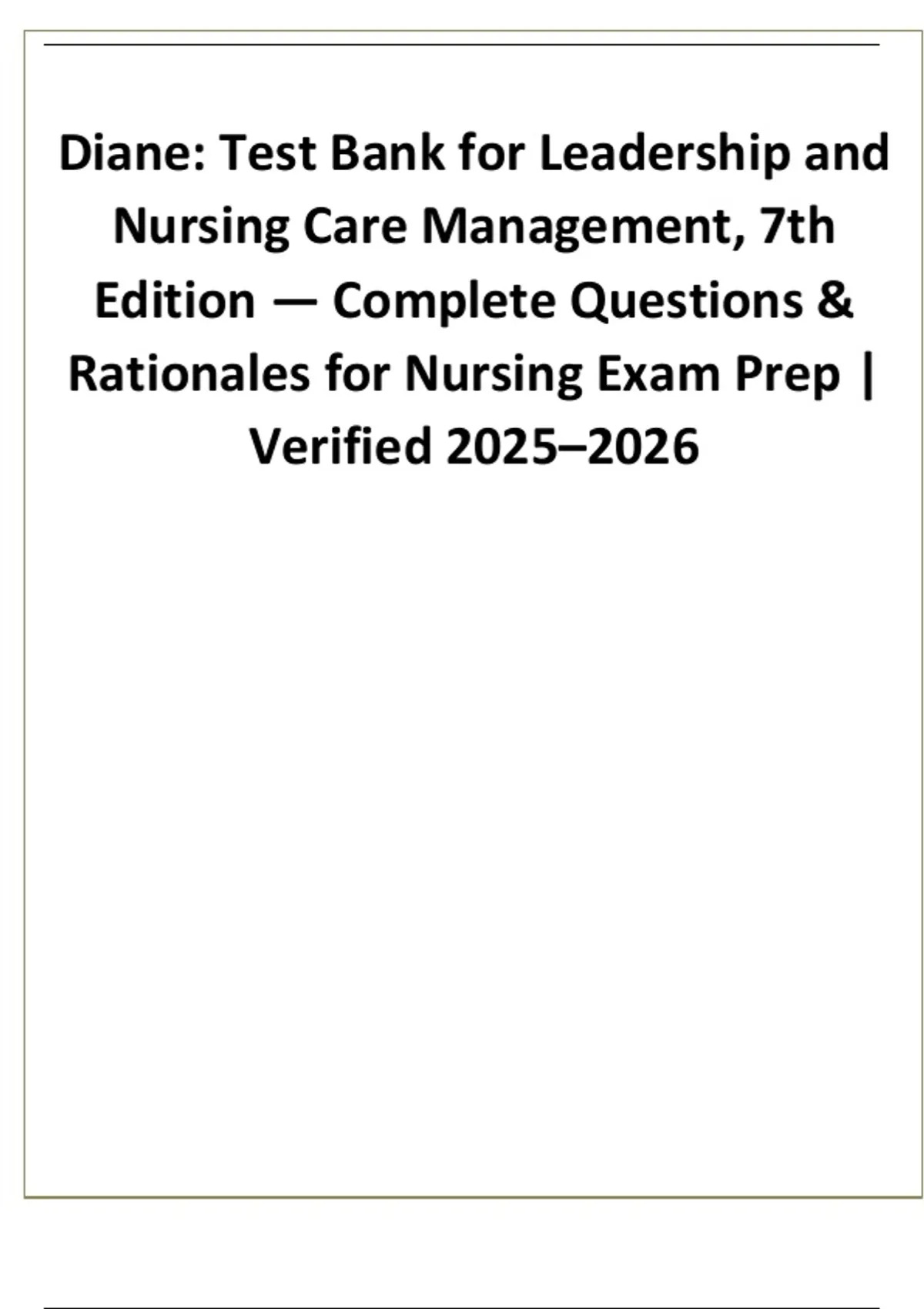 ._ Leadership and Nursing Care Management Test Ban k, Nurs ing Management Exam Prep, 7th Edition Leadership Nurs ing Questions, N ur sing Test Ban k 2025, N ursing E xam Practice, Leadership and Management Study Guide, Nursin g Rationales, Nurs ing Leadership Practice Exam, Nursing Schoo l Test Ban k, Care Management Question s and Answers, Nurs ing Exam Review, Leadership Nur sing Stu dy Material, Nursing Leadership Exam Prep, Nursing Management Rationales, Leadership and Care Management 2025–2026<>