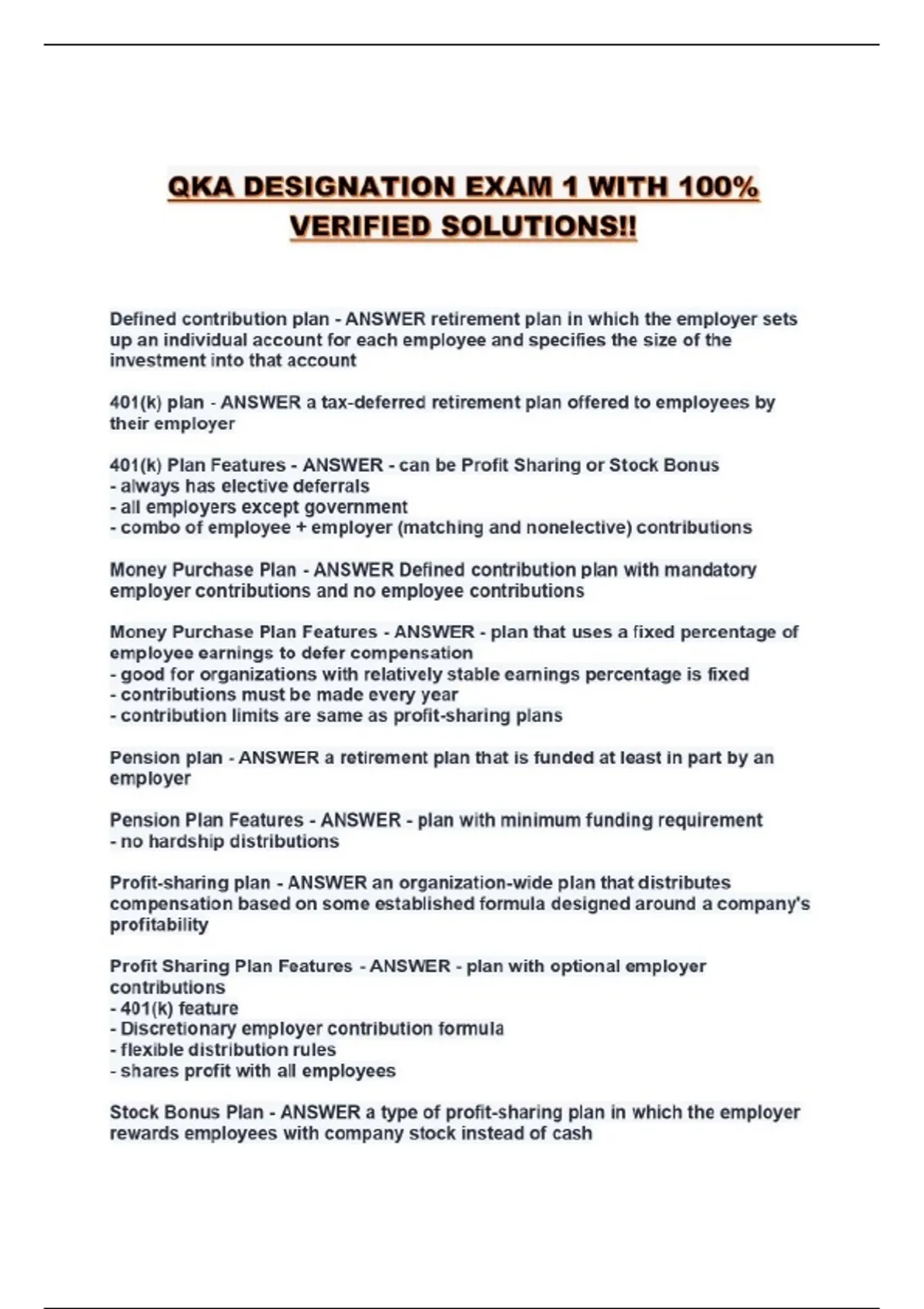 QKA DESIGNATION EXAM 1 WITH 100% VERIFIED SOLUTIONS!!...