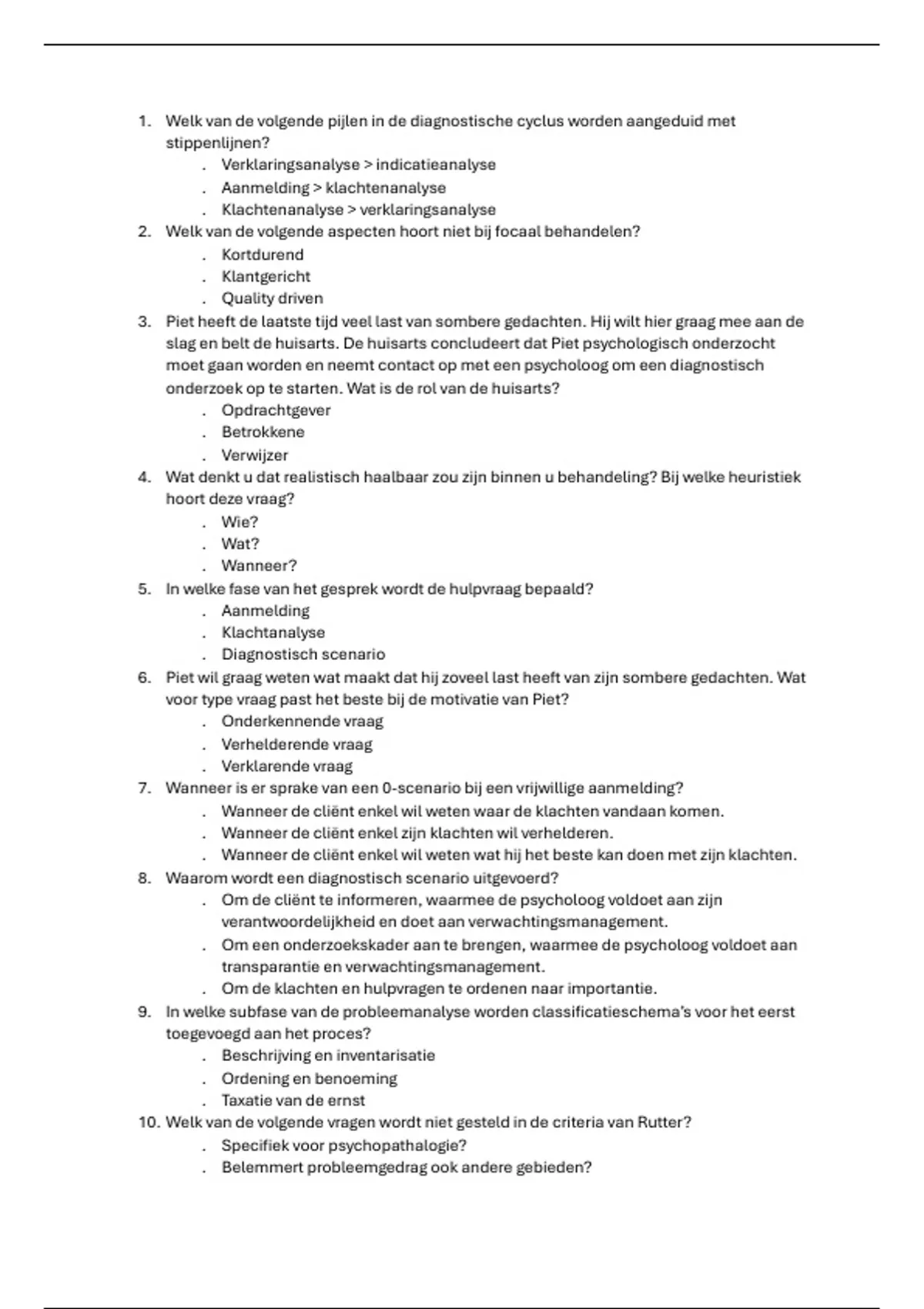 slag en belt de huisarts. De huisarts concludeert dat Piet psychologisch onderzocht