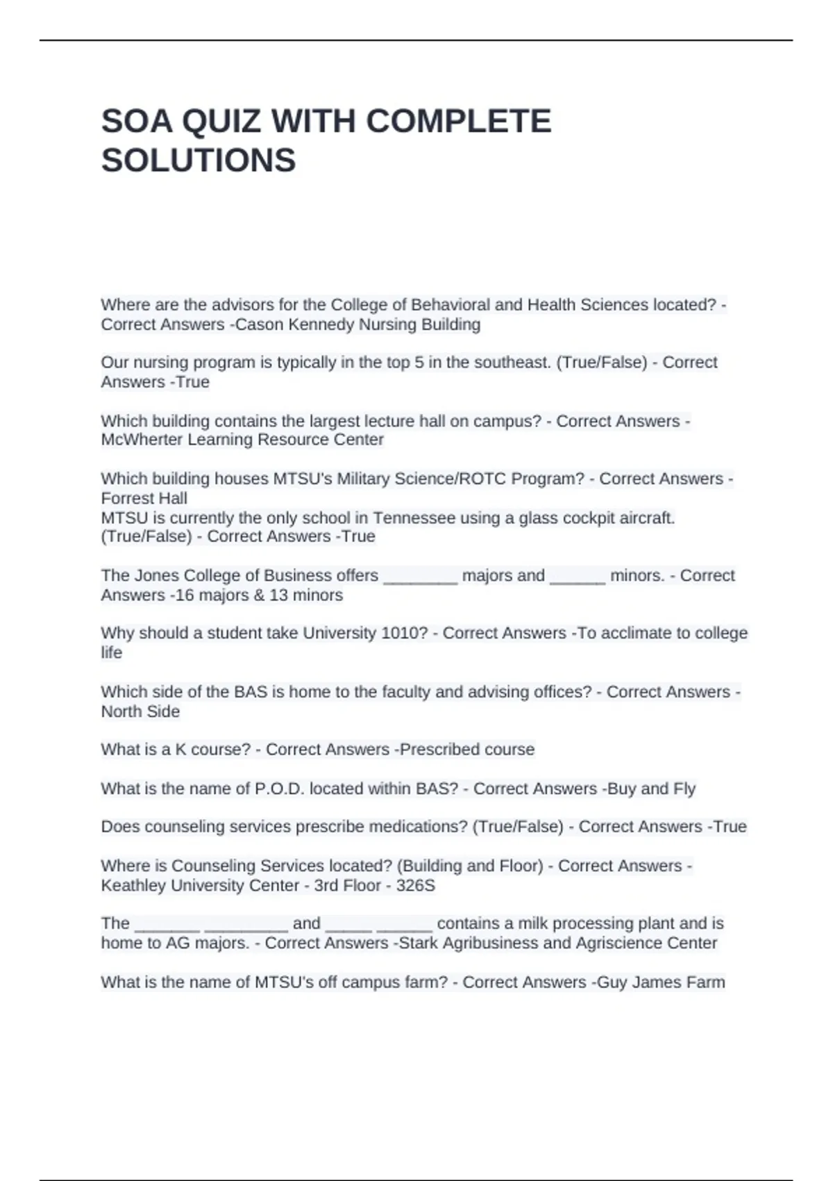 Correct Answers -Cason Kennedy Nursing Building
