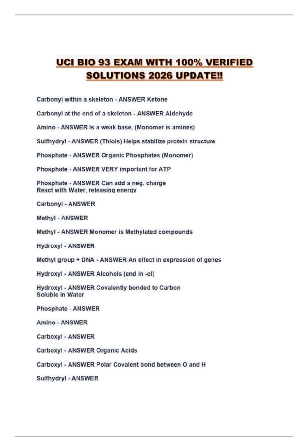 UCI BIO 93 EXAM WITH 100% VERIFIED SOLUTIONS 2026 UPDATE!!...