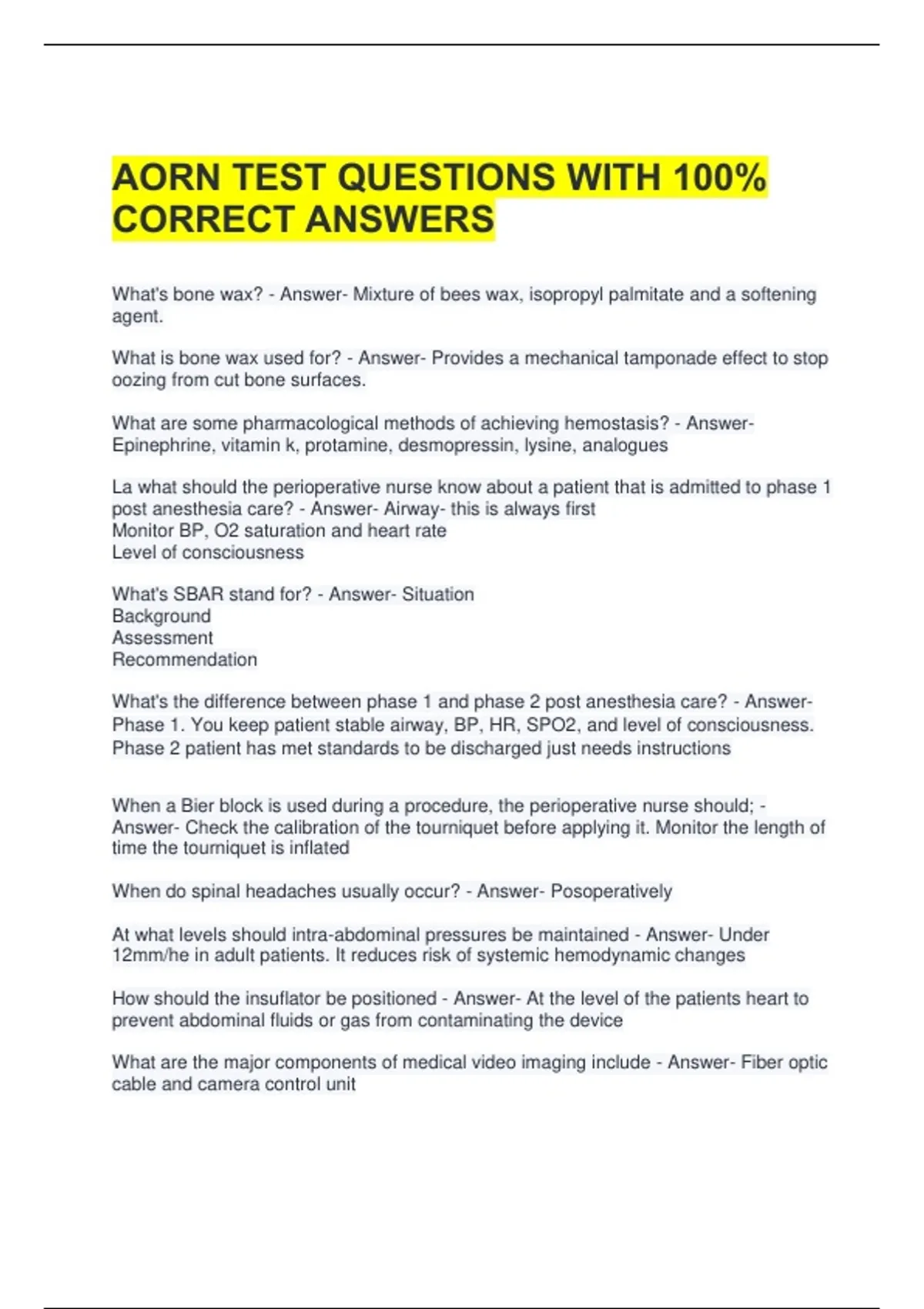 AORN TEST QUESTIONS WITH 100% CORRECT ANSWERS