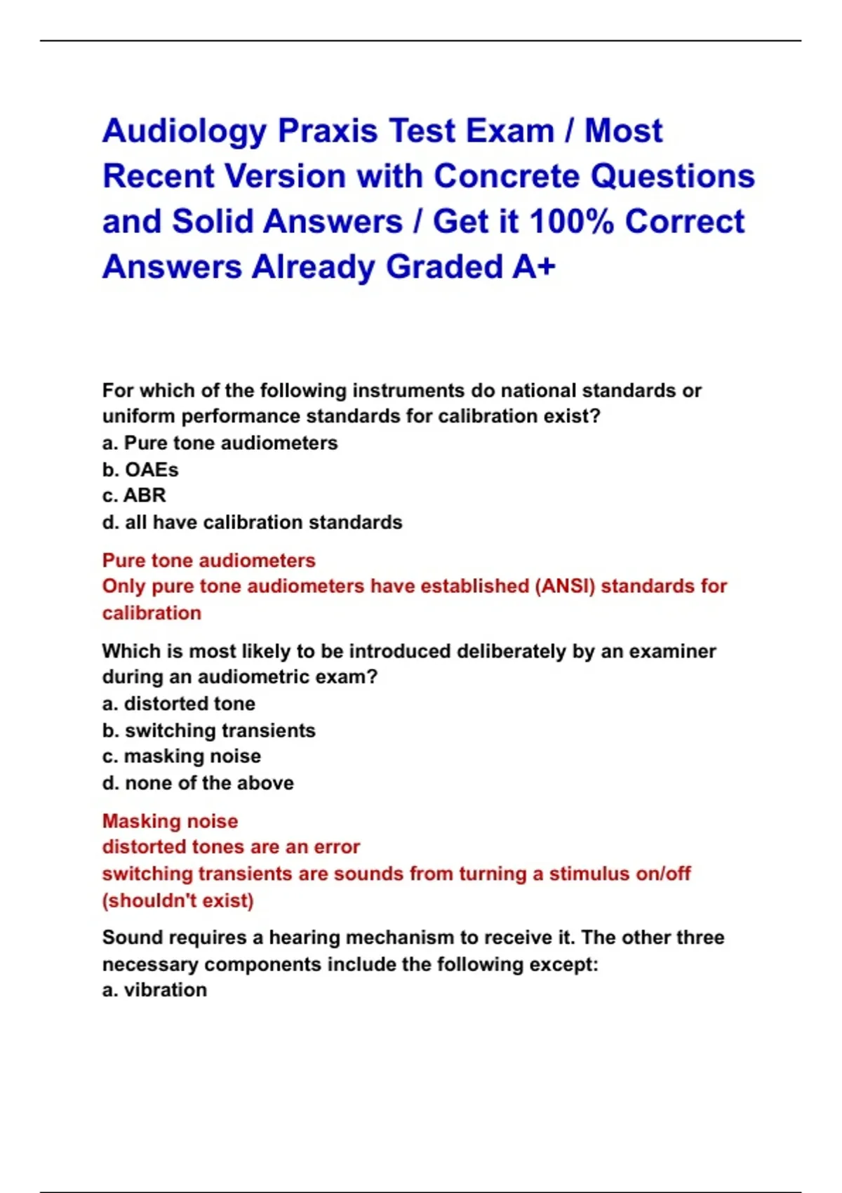 Audiology Praxis Test Exam / Most