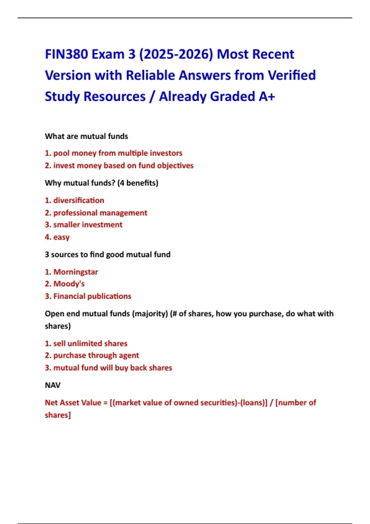 FIN380 Exam 3 (2025-2026) Most Recent