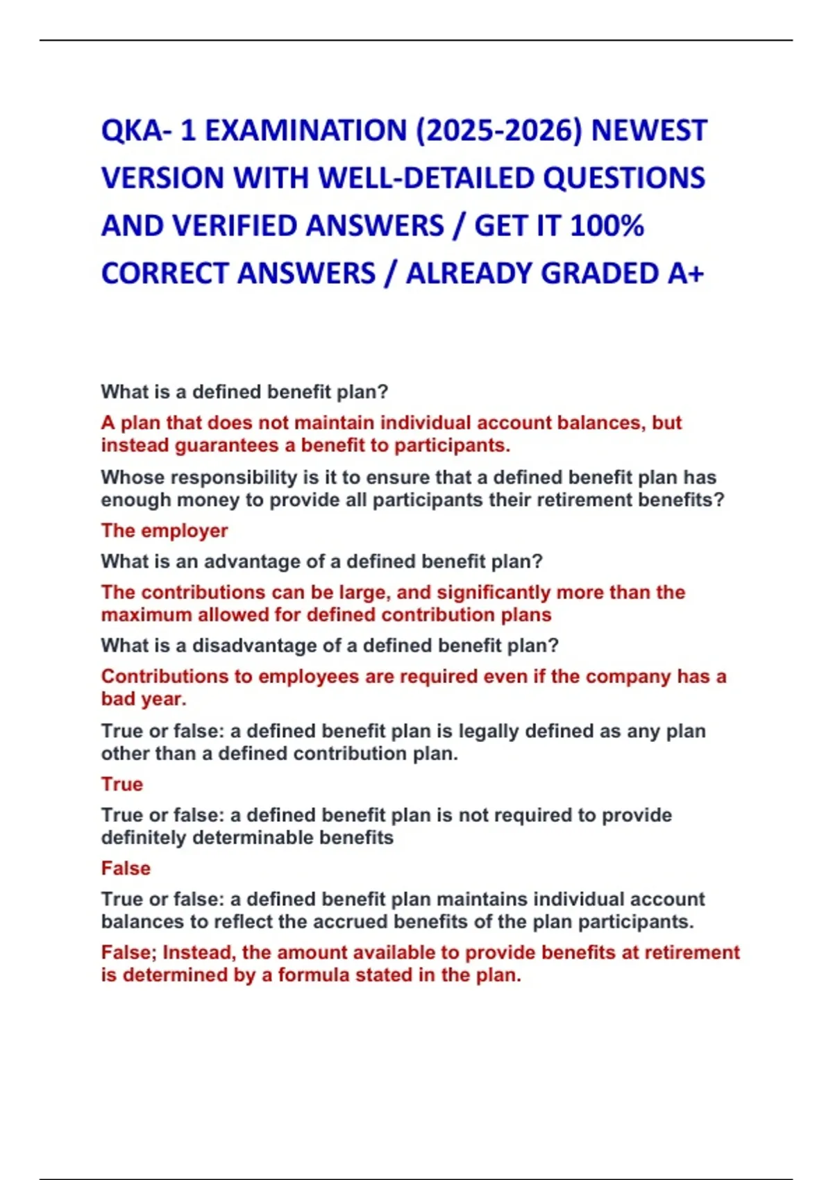 QKA- 1 EXAMINATION () NEWEST VERSION WITH WELL-DETAILED QUESTIONS AND VERIFIED ANSWERS / GET IT 100% CORRECT ANSWERS / ALREADY GRADED A+