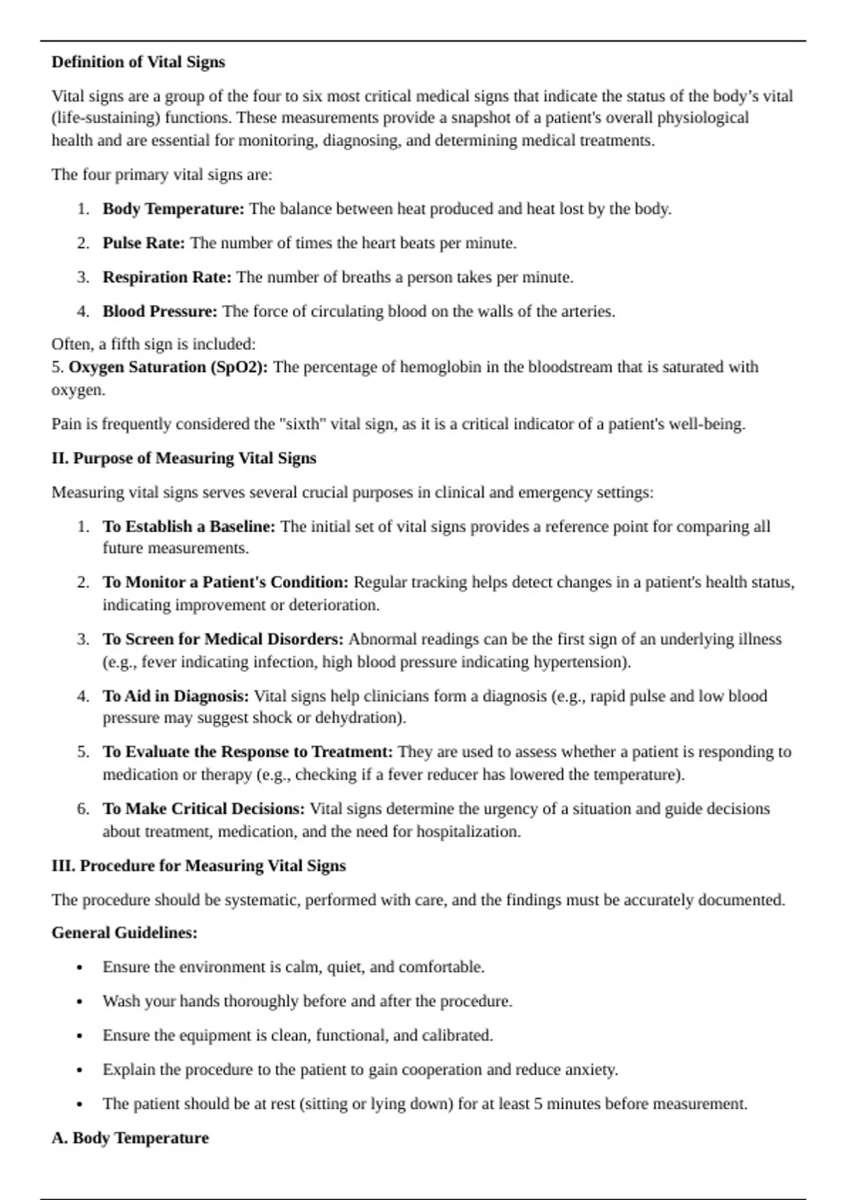 1. To Establish a Baseline: The initial set of vital signs provides a reference point for comparing all