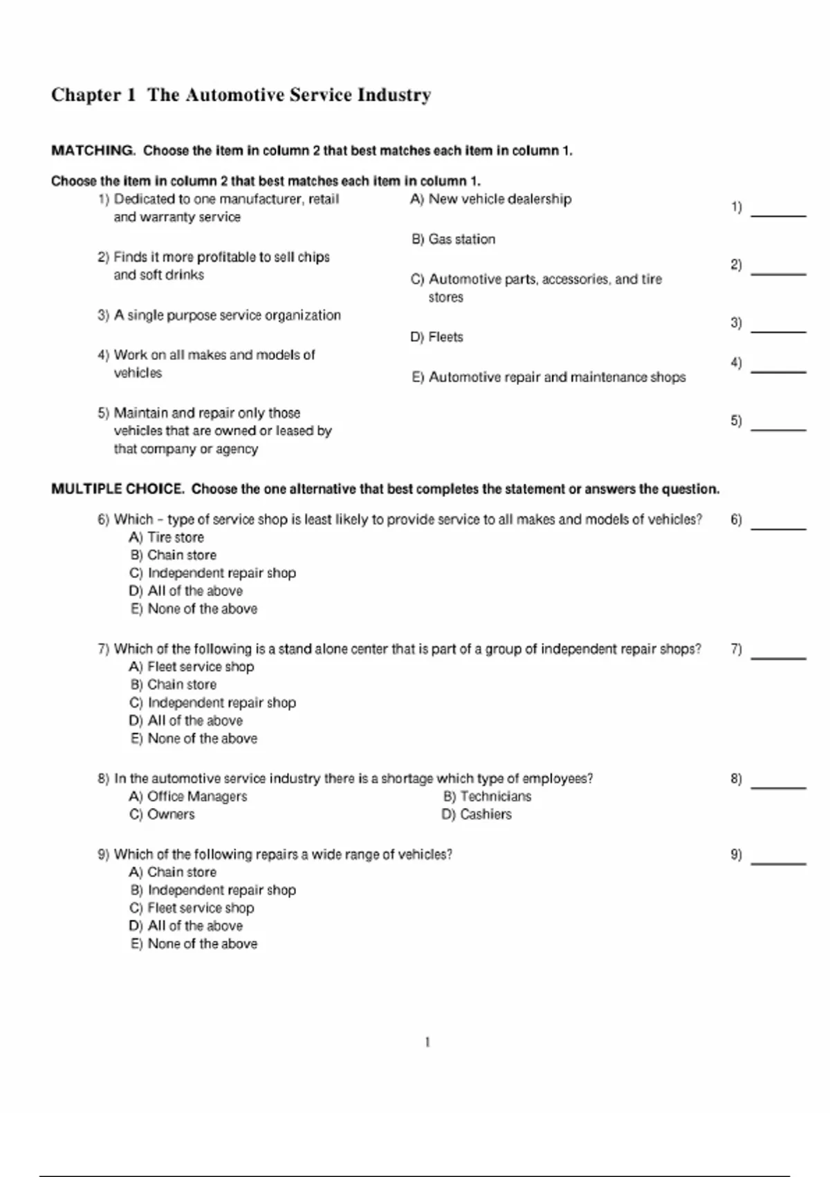 Test Bank for Automotive Service Management, 3rd edition By Andrew Rezin