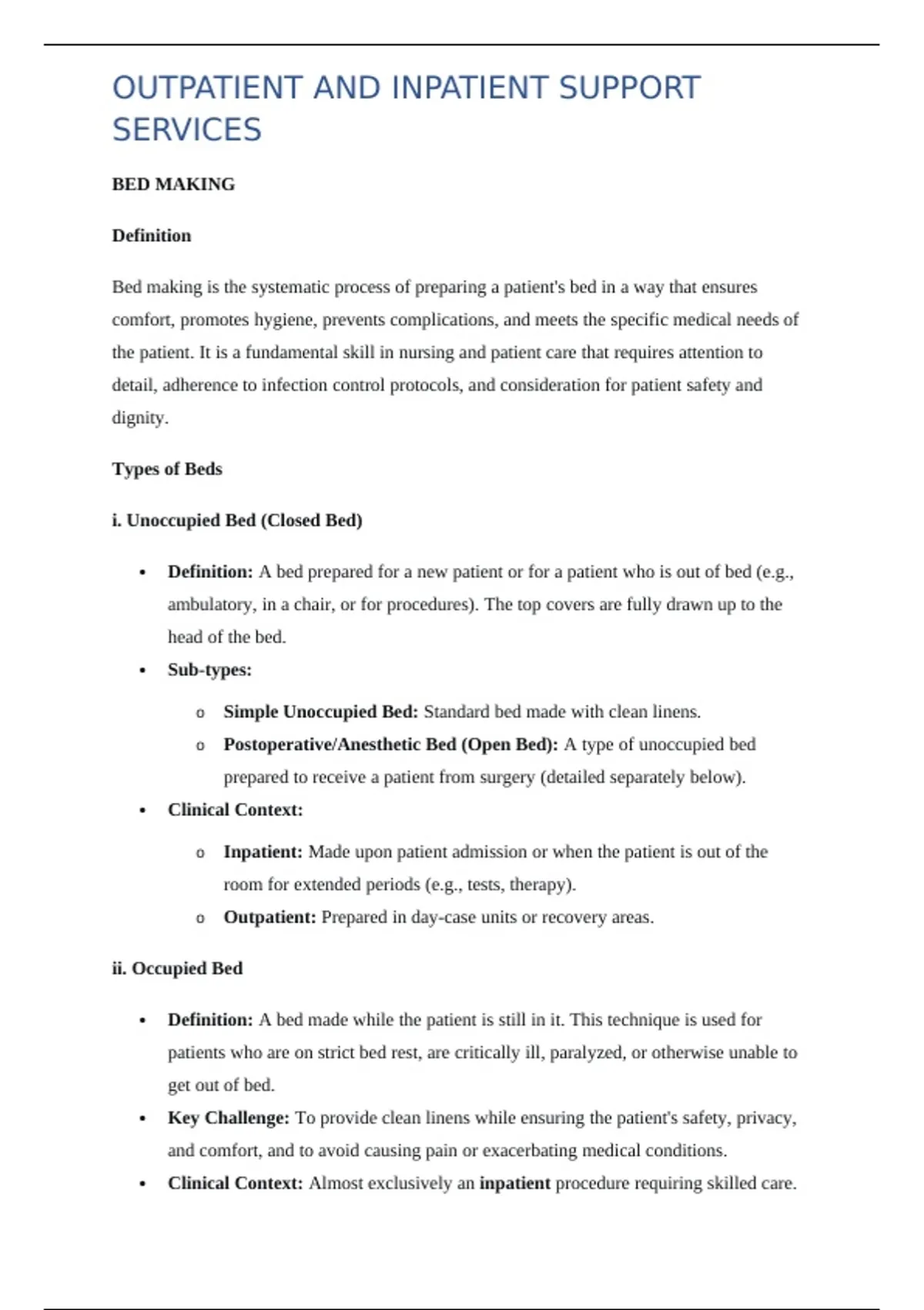 Bed making is the systematic process of preparing a patient's bed in a way that ensures