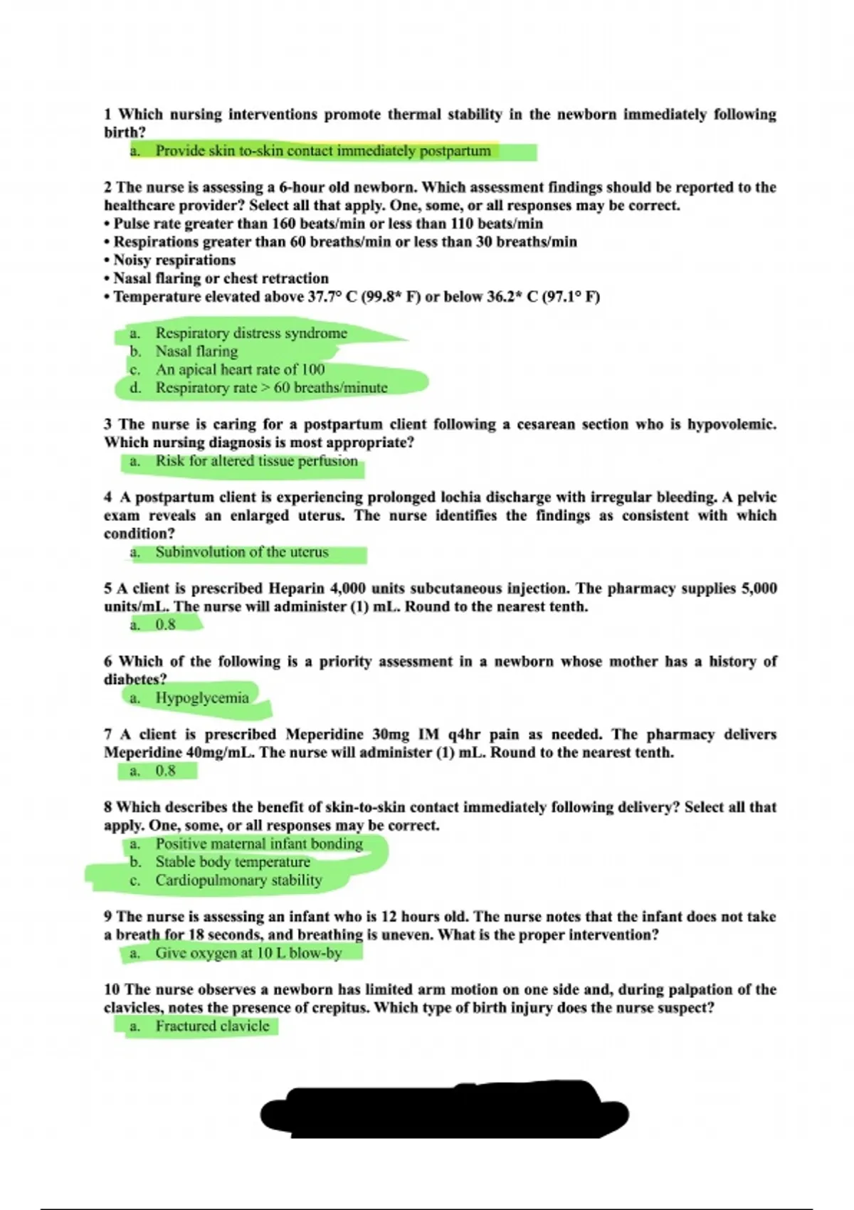 1 Which nursing interventions promote thermal stability in the newborn immediately following