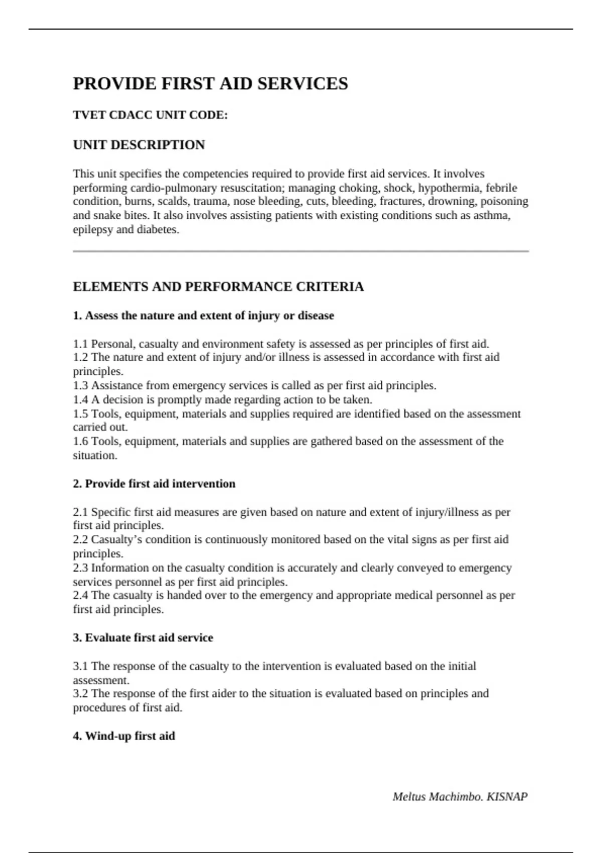 1.2 The nature and extent of injury and/or illness is assessed in accordance with first aid