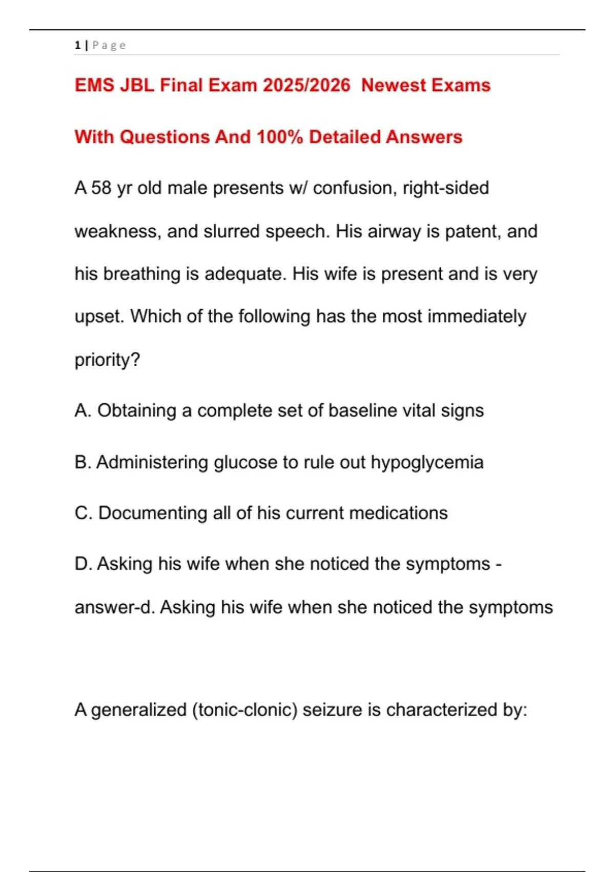 EMS JBL Final Exam 2025/2026 Newest Exams