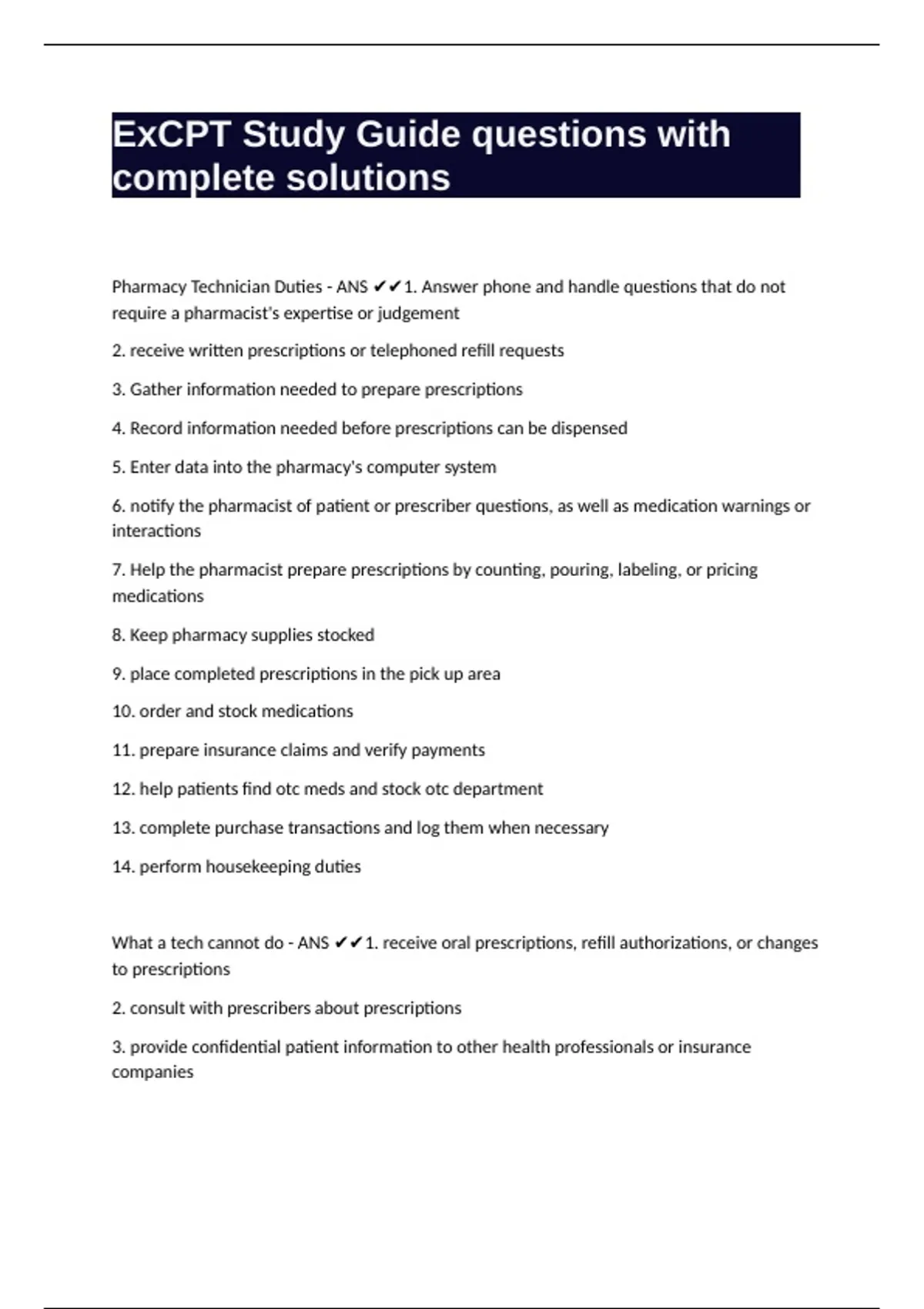 Pharmacy Technician Duties - ANS ✔✔1. Answer phone and handle questions that do not