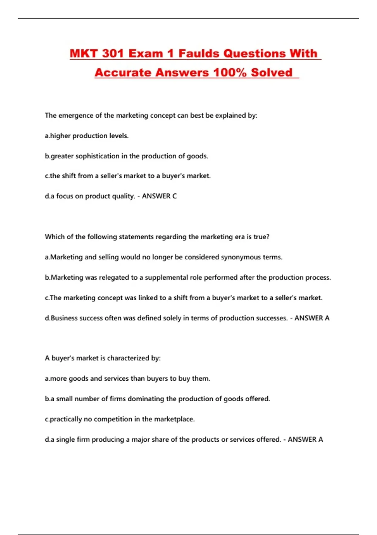 MKT 301 Exam 1 Faulds Questions With