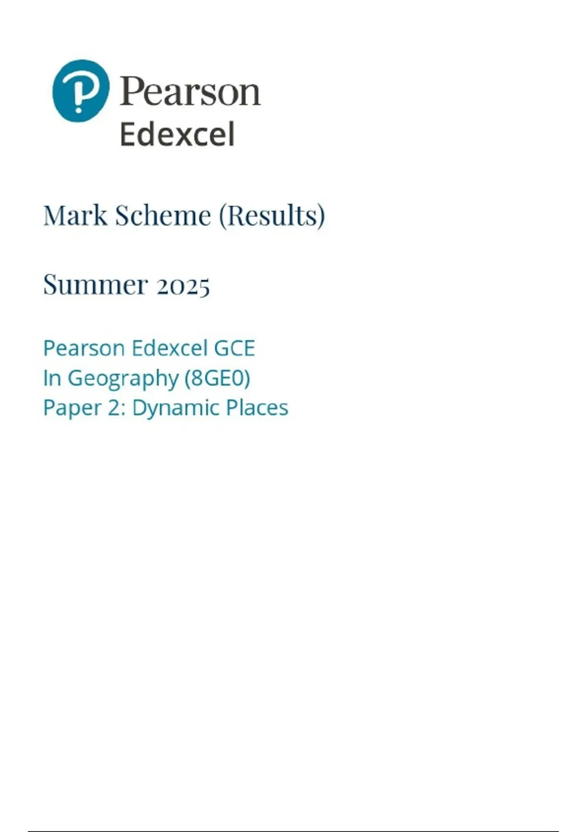 As-Level Edexcel 2025 Geography Paper 2 Mark Scheme
