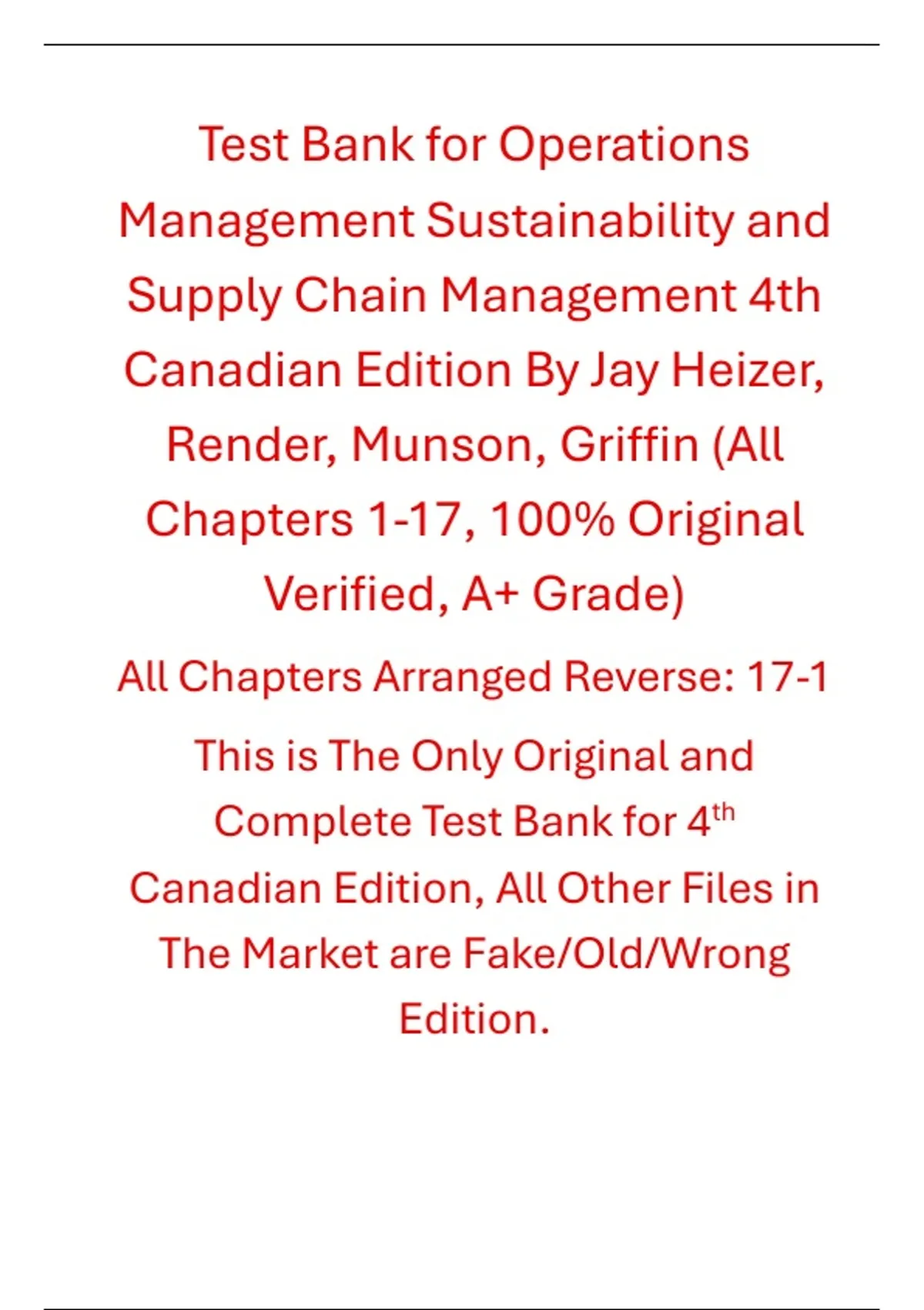 Test Bank Operations Management Sustainability and Supply Chain Management 4th Canadian Edition By Jay Heizer, Render, Munson, Griffin