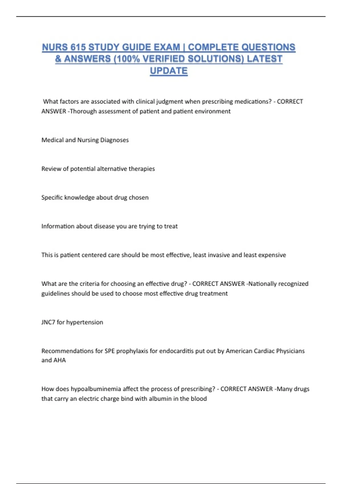 NURS 615 STUDY GUIDE EXAM | COMPLETE QUESTIONS