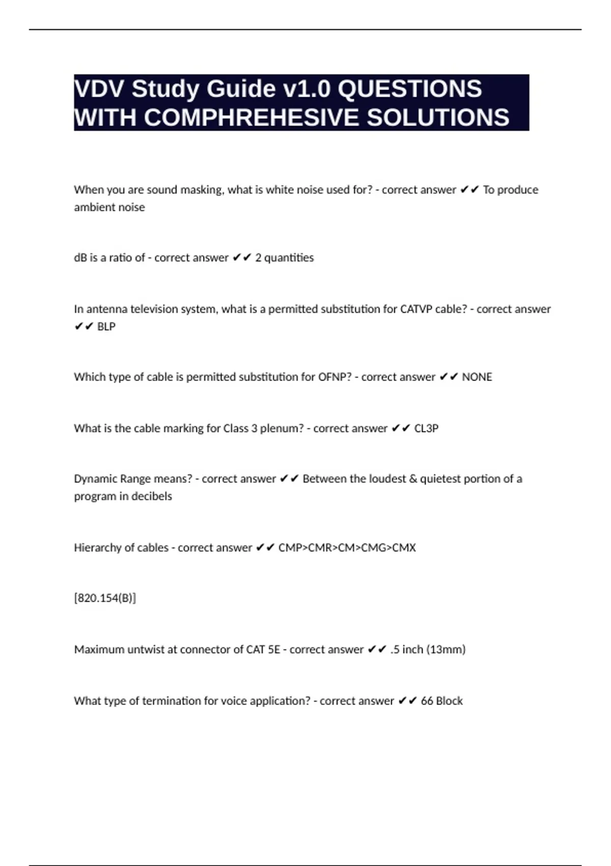 VDV Study Guide v1.0 QUESTIONS WITH COMPHREHESIVE SOLUTIONS