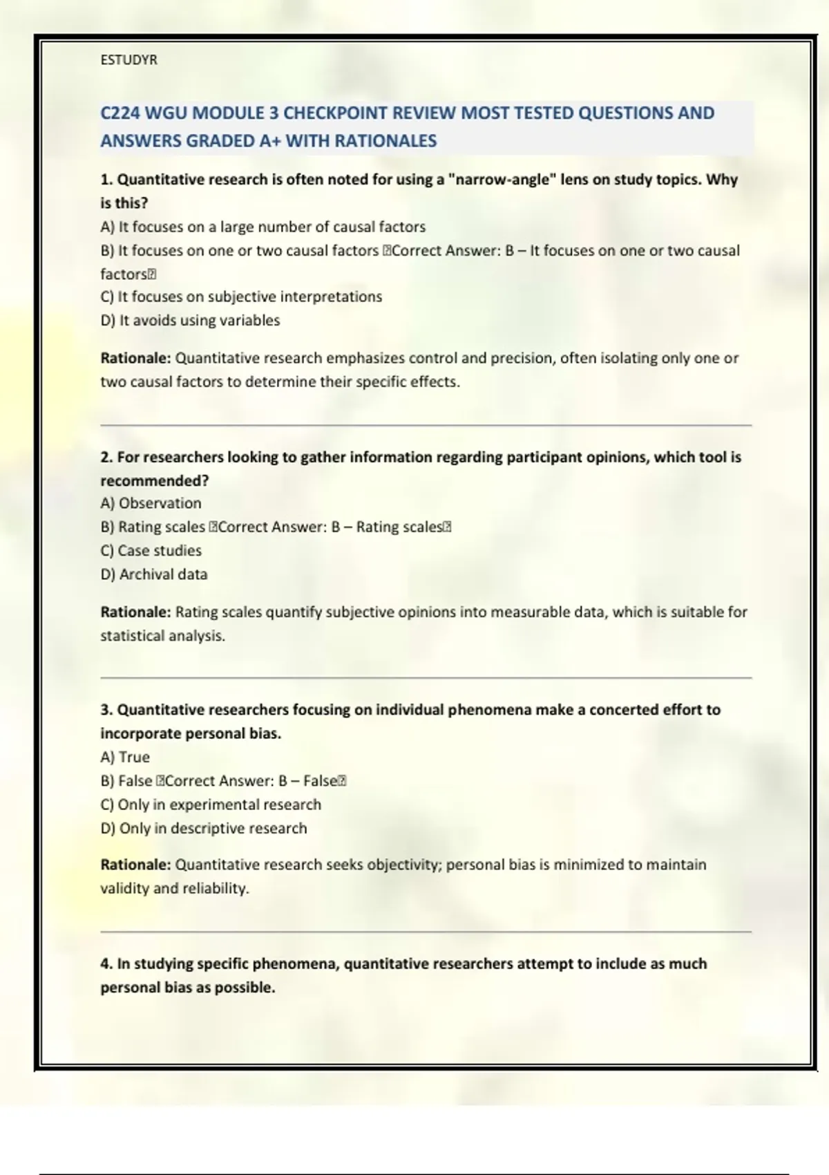 4. In studying specific phenomena, quantitative researchers attempt to include as much
