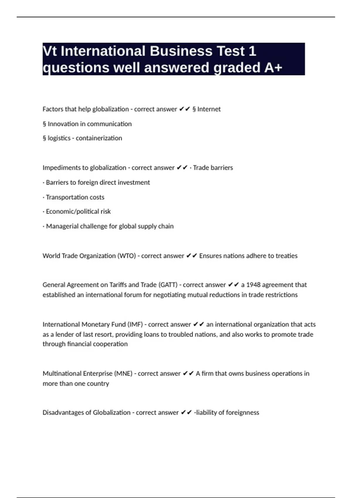 Impediments to globalization - correct answer ✔✔ · Trade barriers