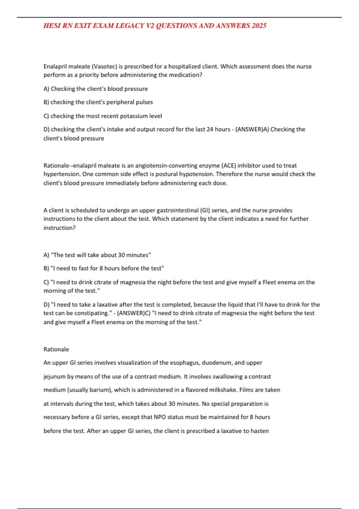 before the test. After an upper GI series, the client is prescribed a laxative to hasten