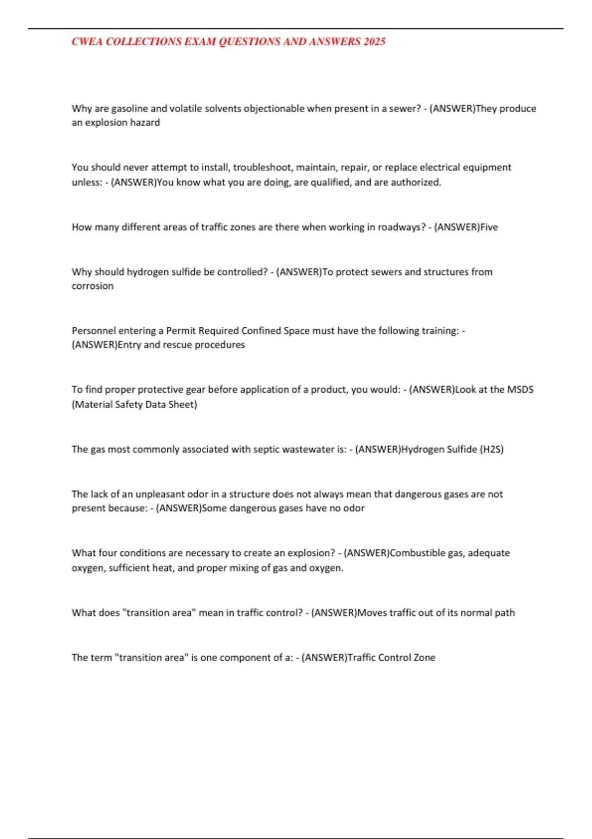 , CWEA COLLECTIONS EXAM QUESTIONS AND ANSWERS 2025