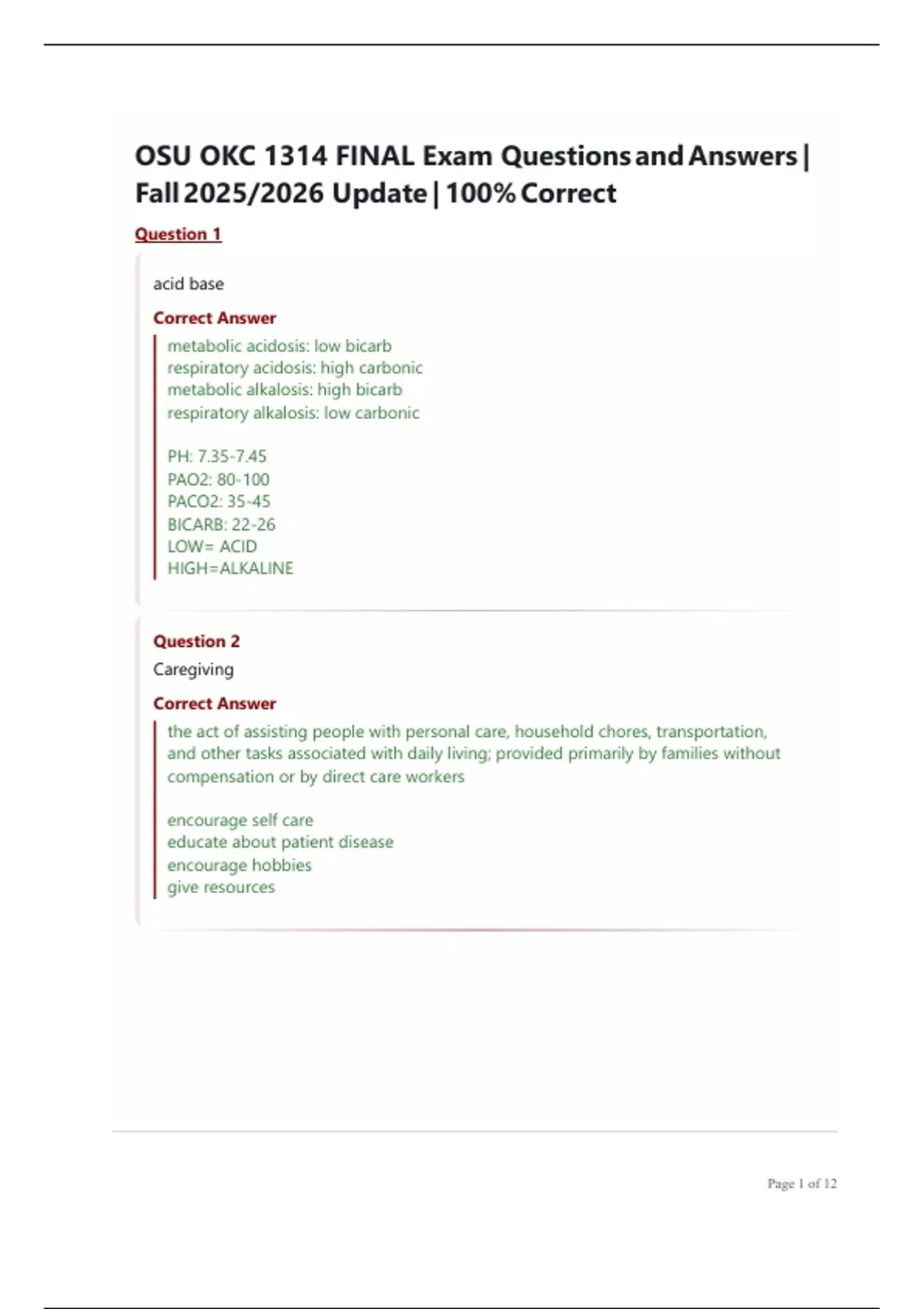 OSU OKC 1314 FINAL Exam Questions and Answers |