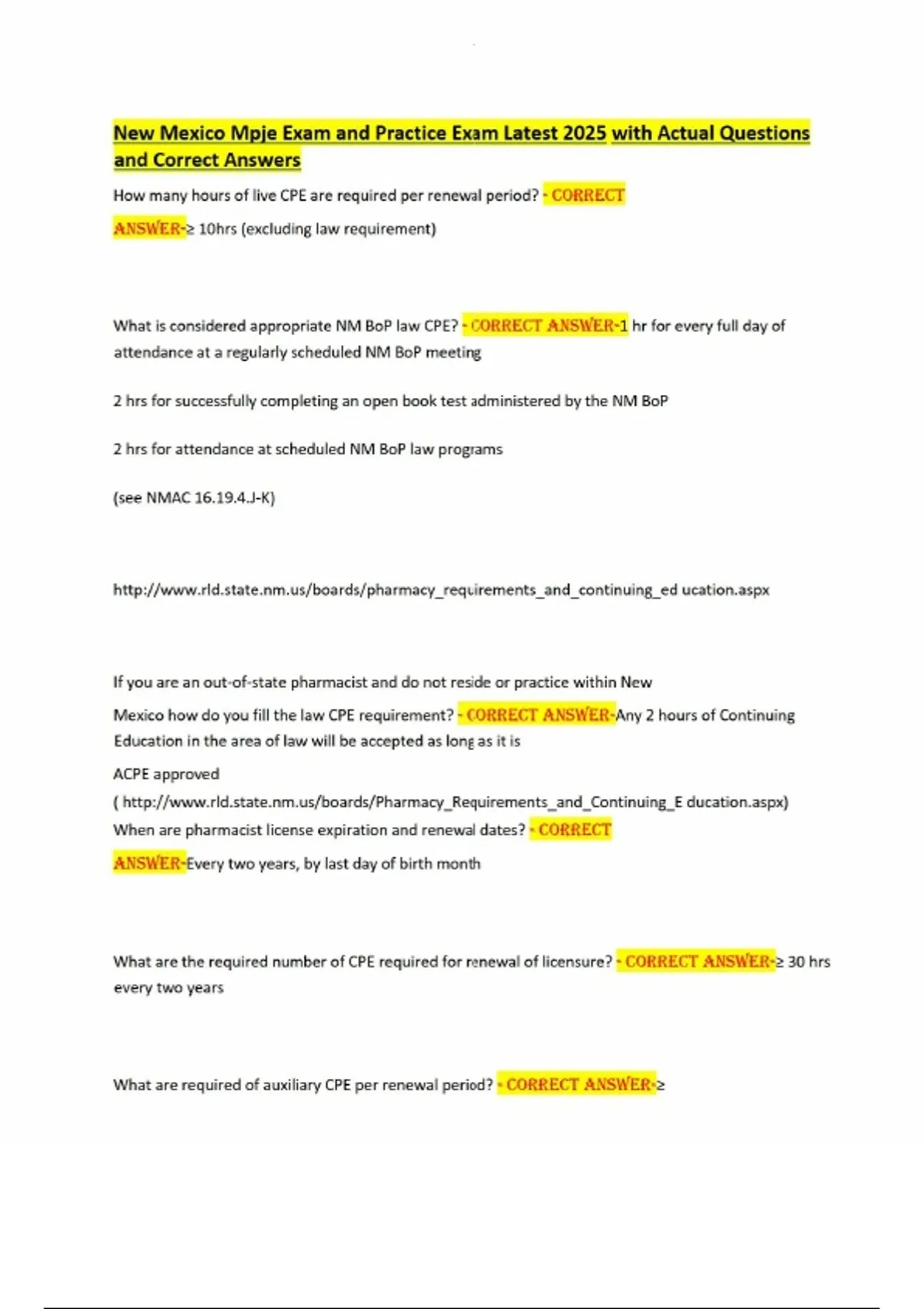 New Mexico Mpje Exam and Practice Exam Latest 2025 with Actual Questions and Correct AnswersNew Mexico Mpje Exam and Practice Exam Latest 2025 with Actual Questions and Correct Answers