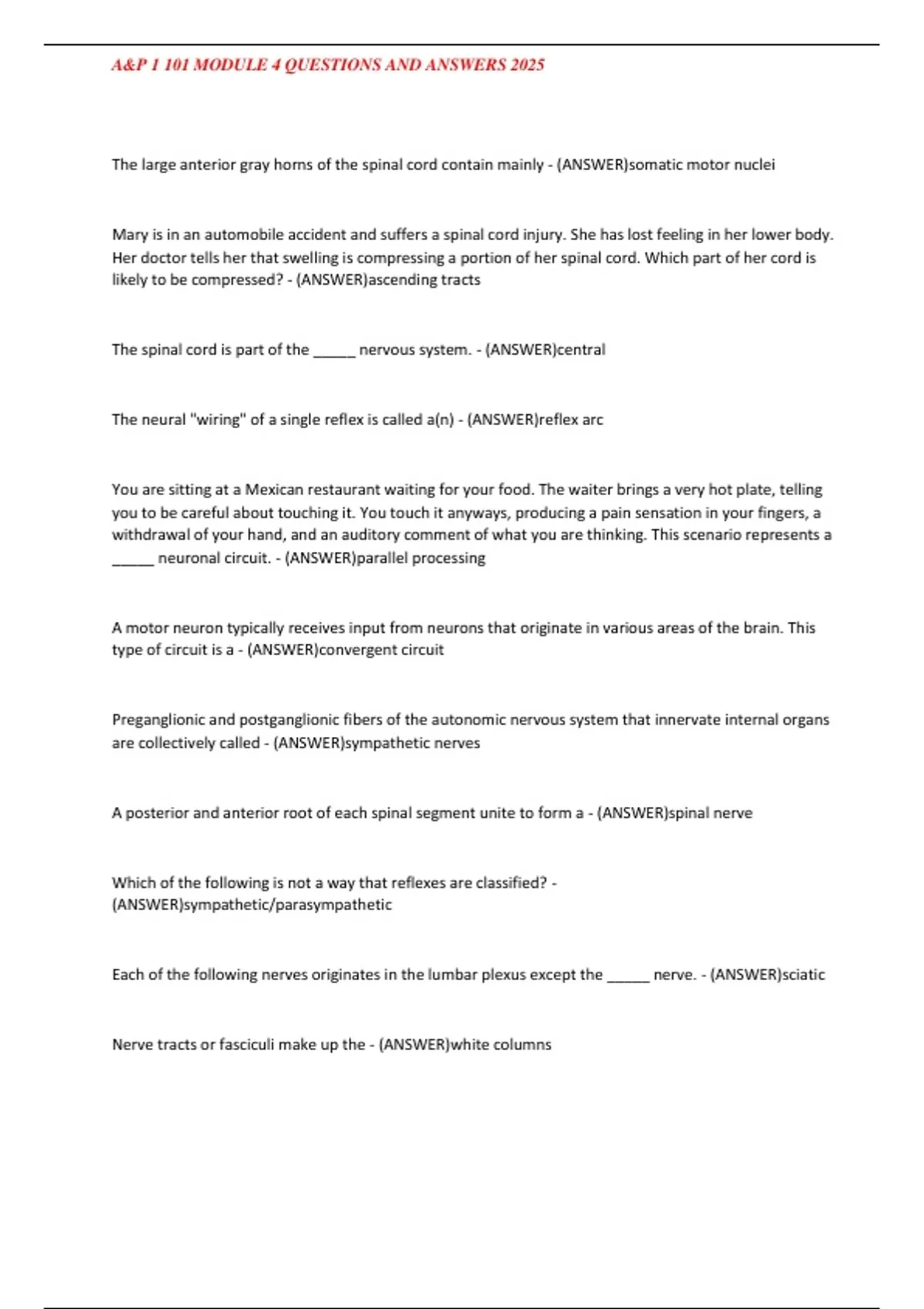 , A&P 1 101 MODULE 4 QUESTIONS AND ANSWERS 2025