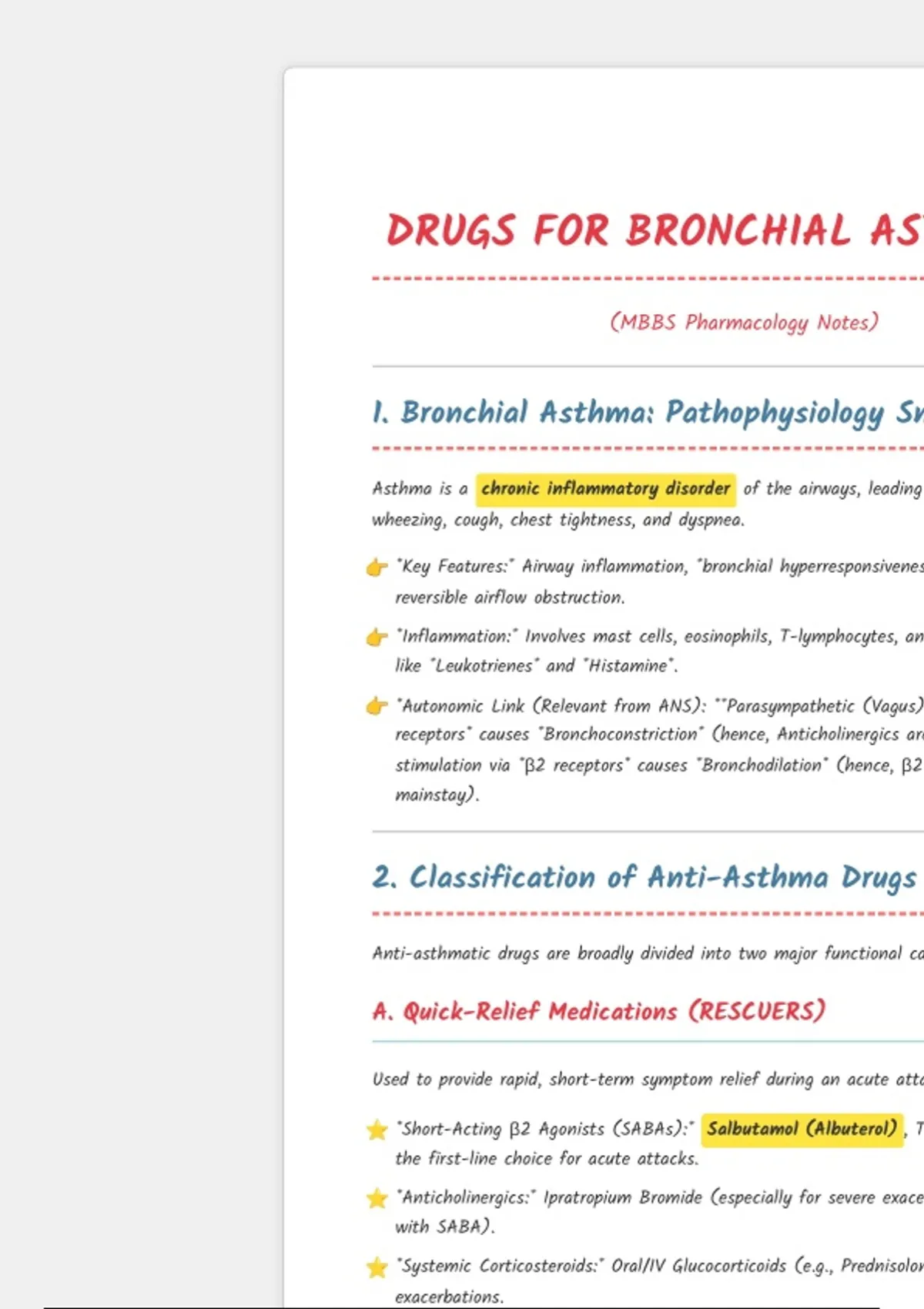 ⭐ *Short-Acting β2 Agonists (SABAs):* Salbutamol (Albuterol) , T