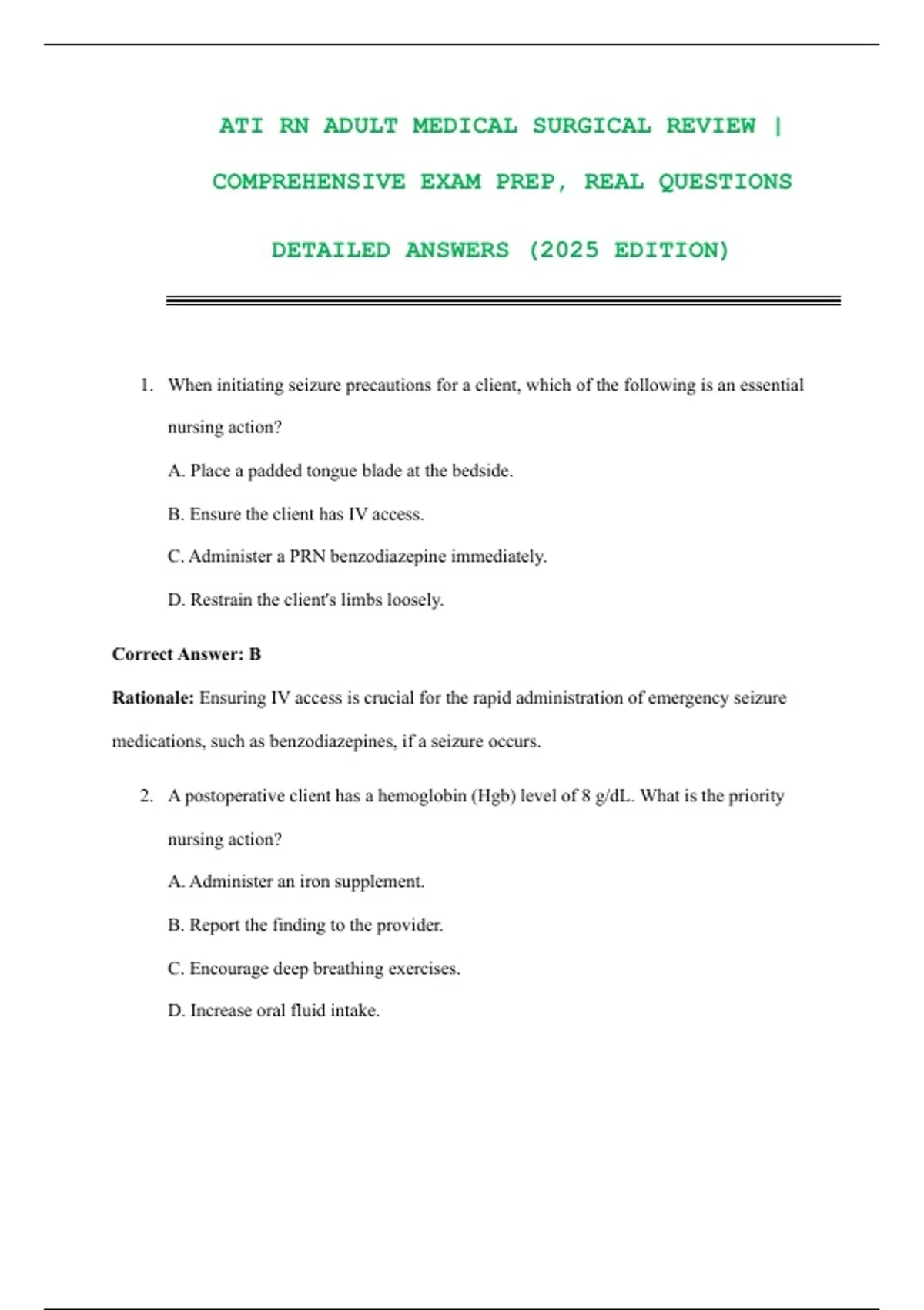 1. When initiating seizure precautions for a client, which of the following is an essential