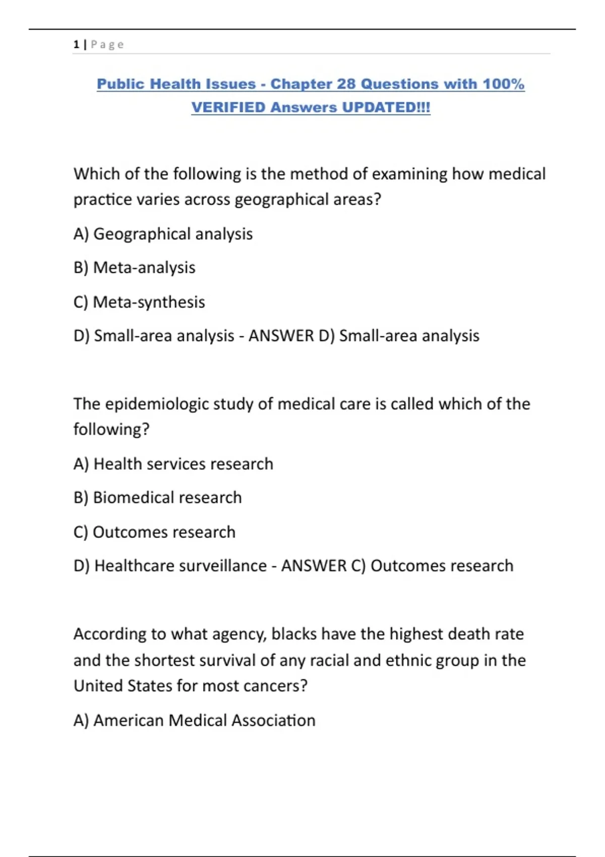 Public Health Issues - Chapter 28 Questions with 100%