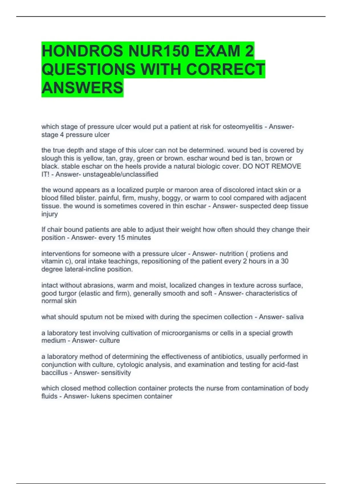 HONDROS NUR150 EXAM 2 QUESTIONS WITH CORRECT ANSWERS